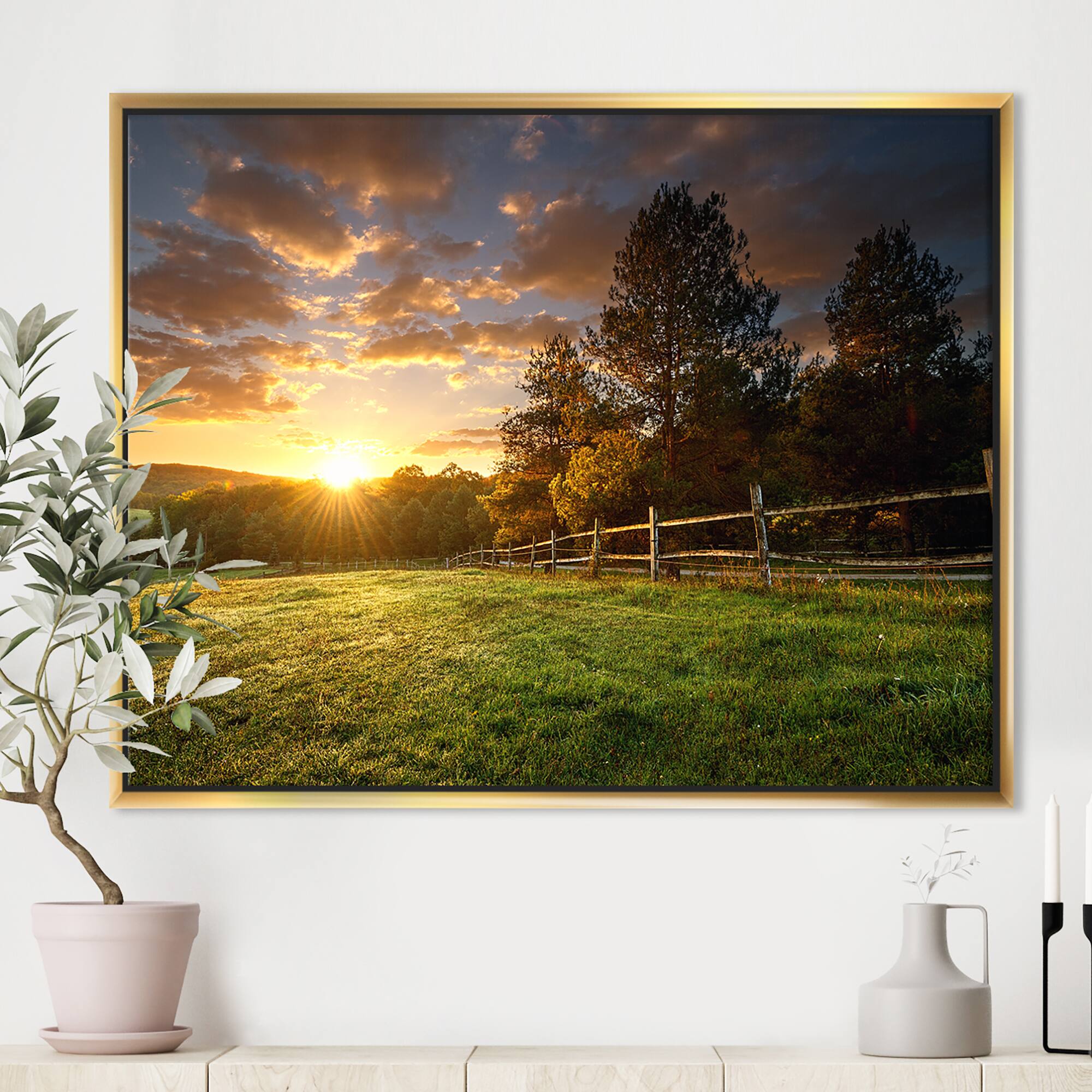 Designart - Fenced Ranch at Sunrise - Landscape Framed Canvas Art Print