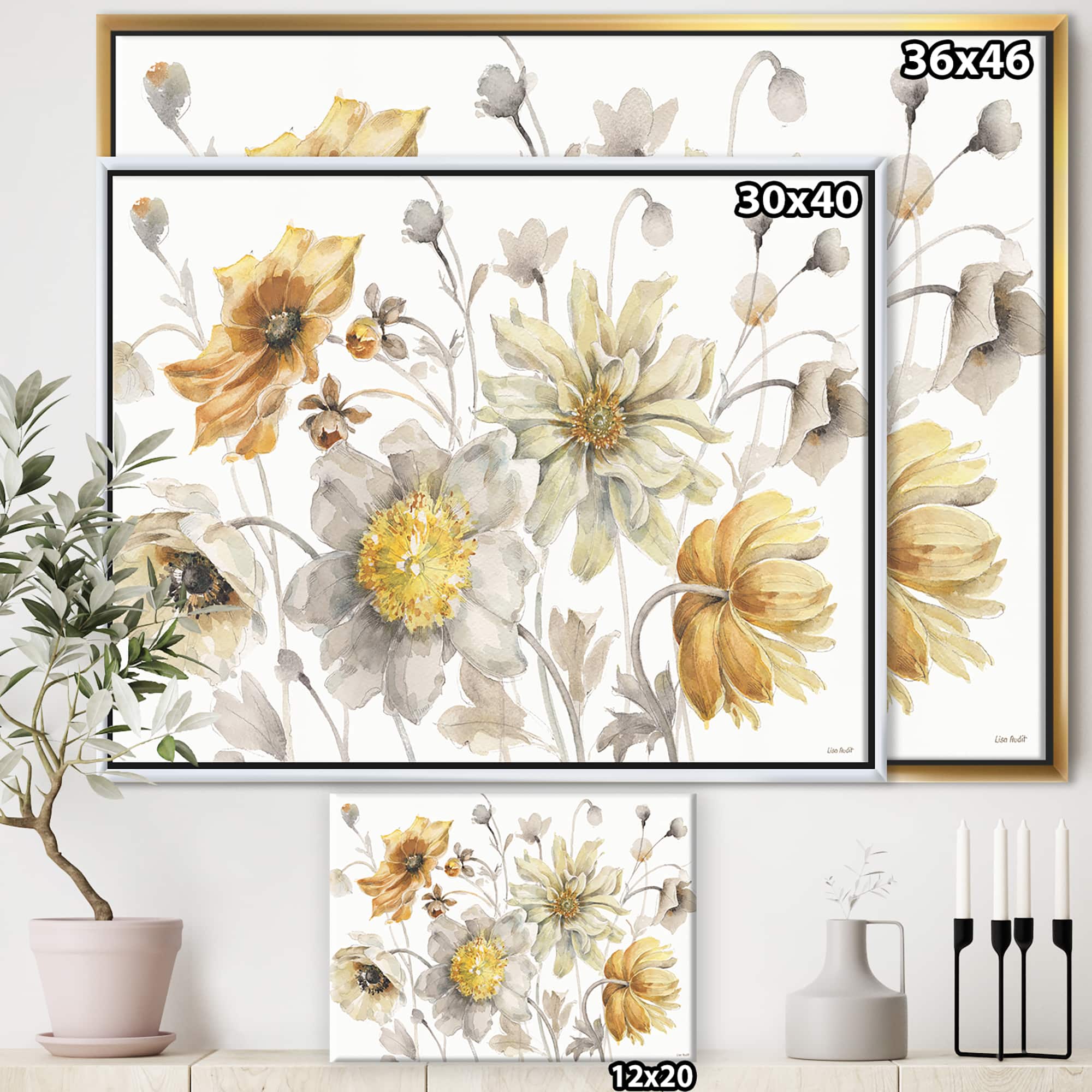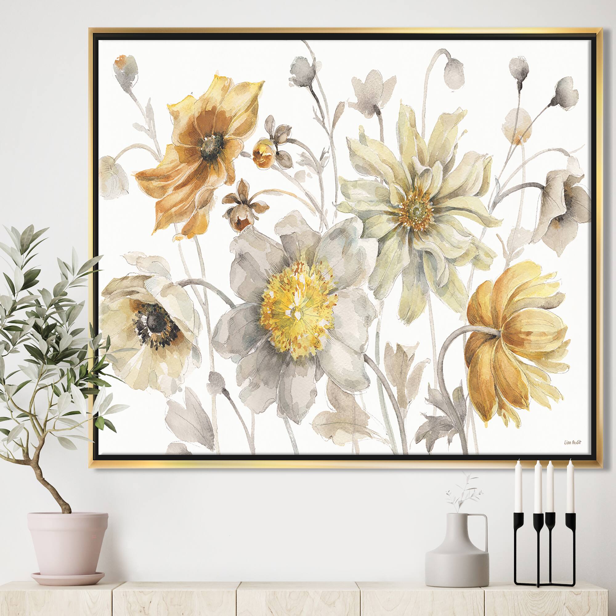 Designart - Fields of Gold Watercolor Flower VII - Traditional Canvas in Gold Frame