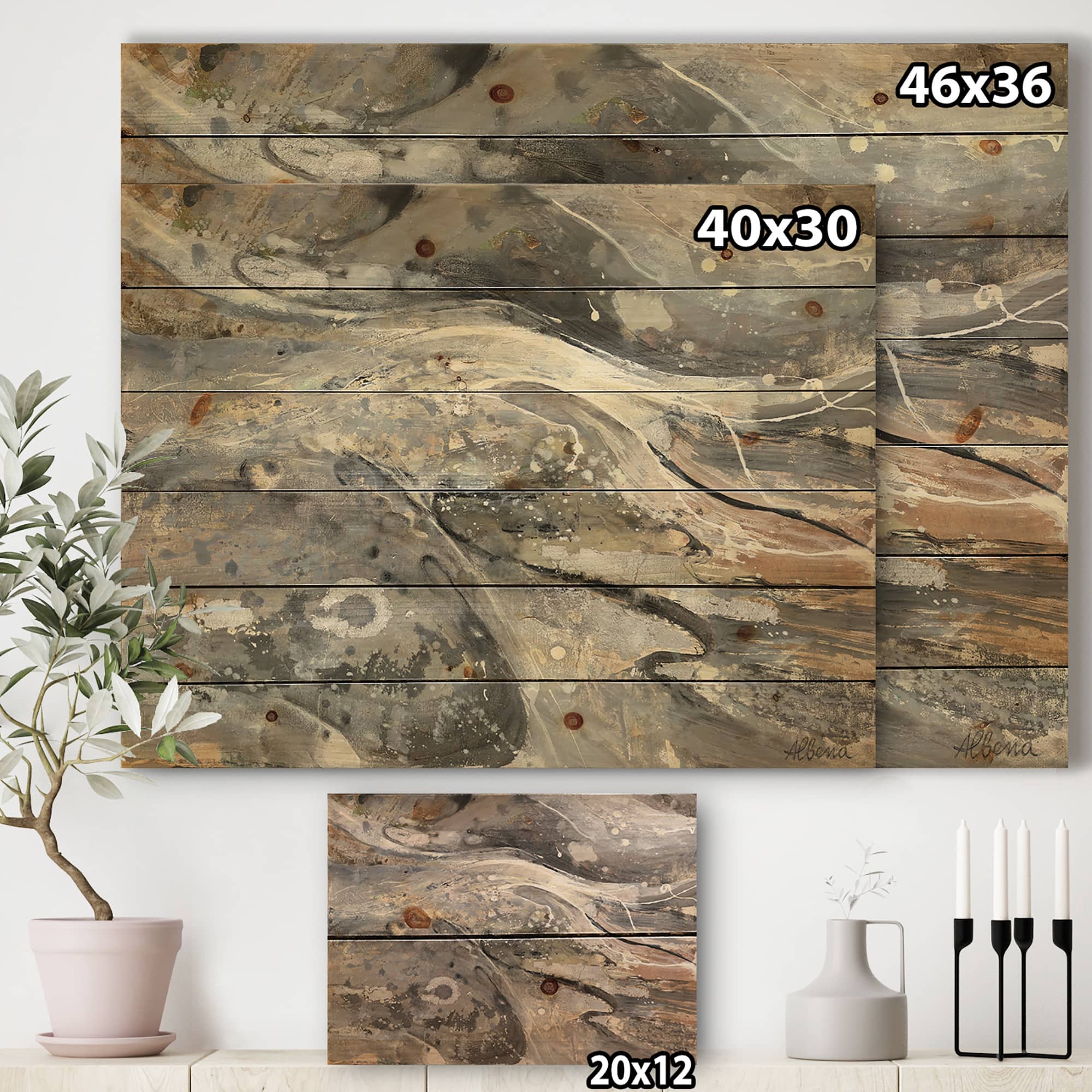 Designart - Fire and Ice Minerals VI - Modern & Contemporary Print on Natural Pine Wood