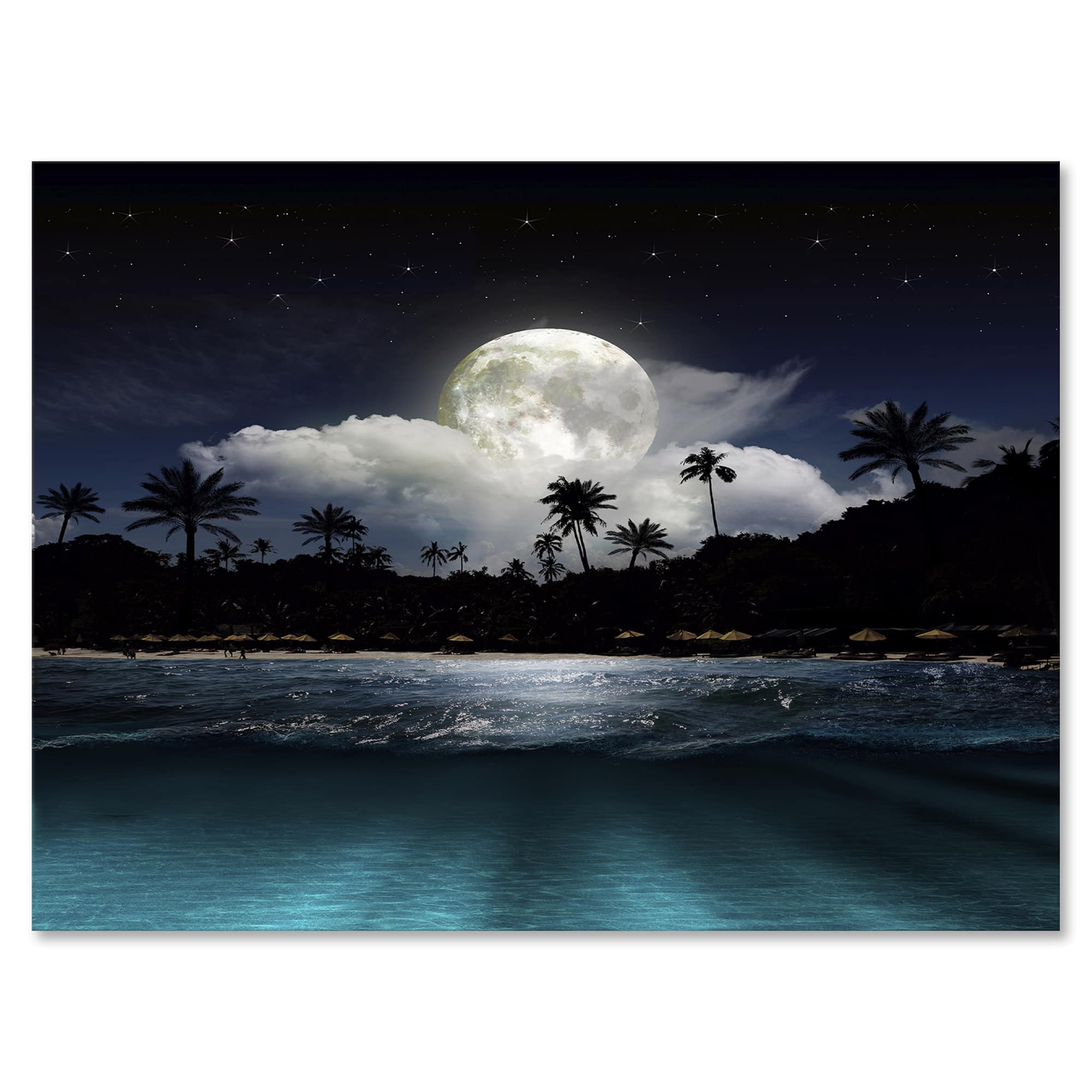 Designart - Fishing Boat Under Tropical Full Moon - Modern Canvas Wall Art Print