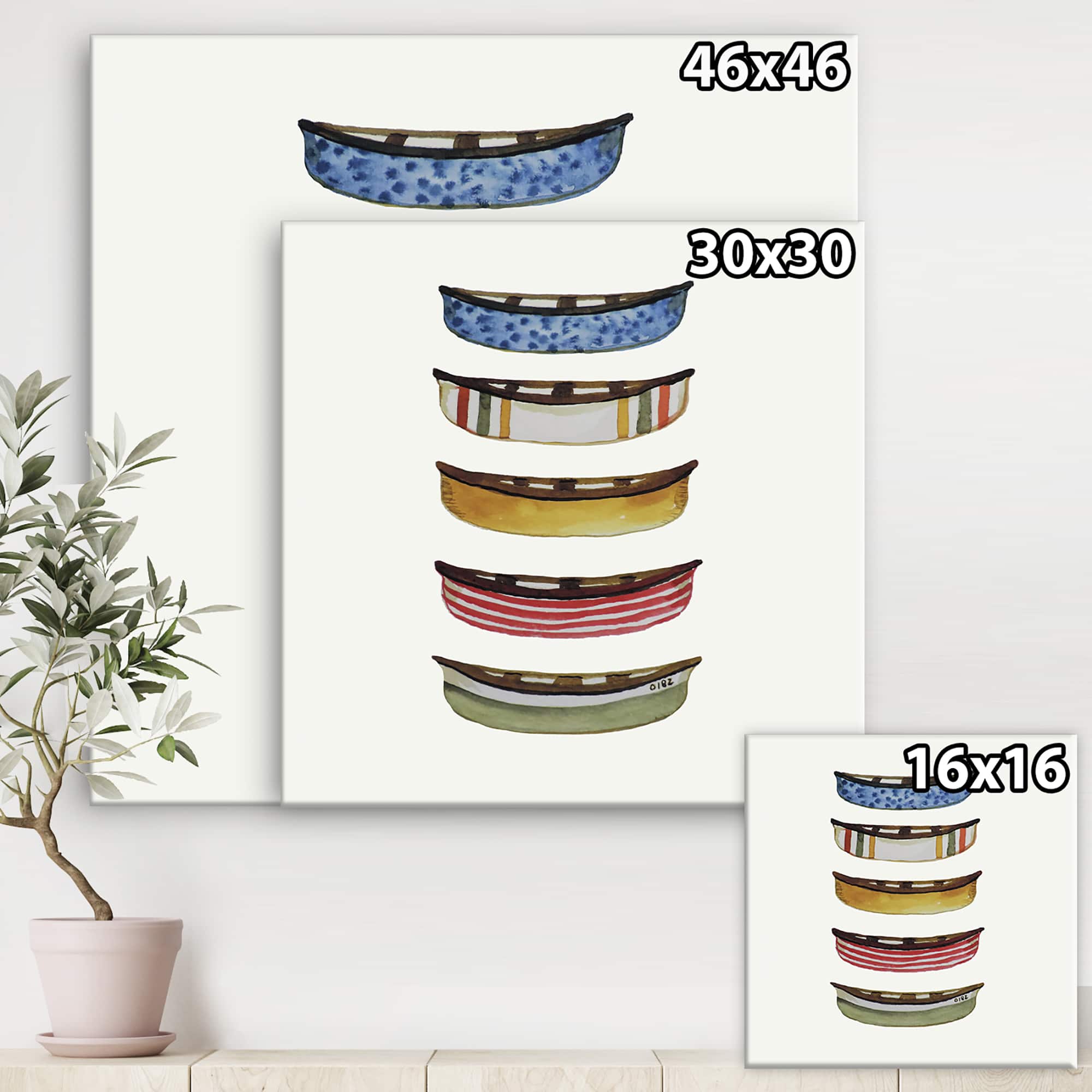 Designart - Five Canoes - Lake House Premium Canvas Wall Art