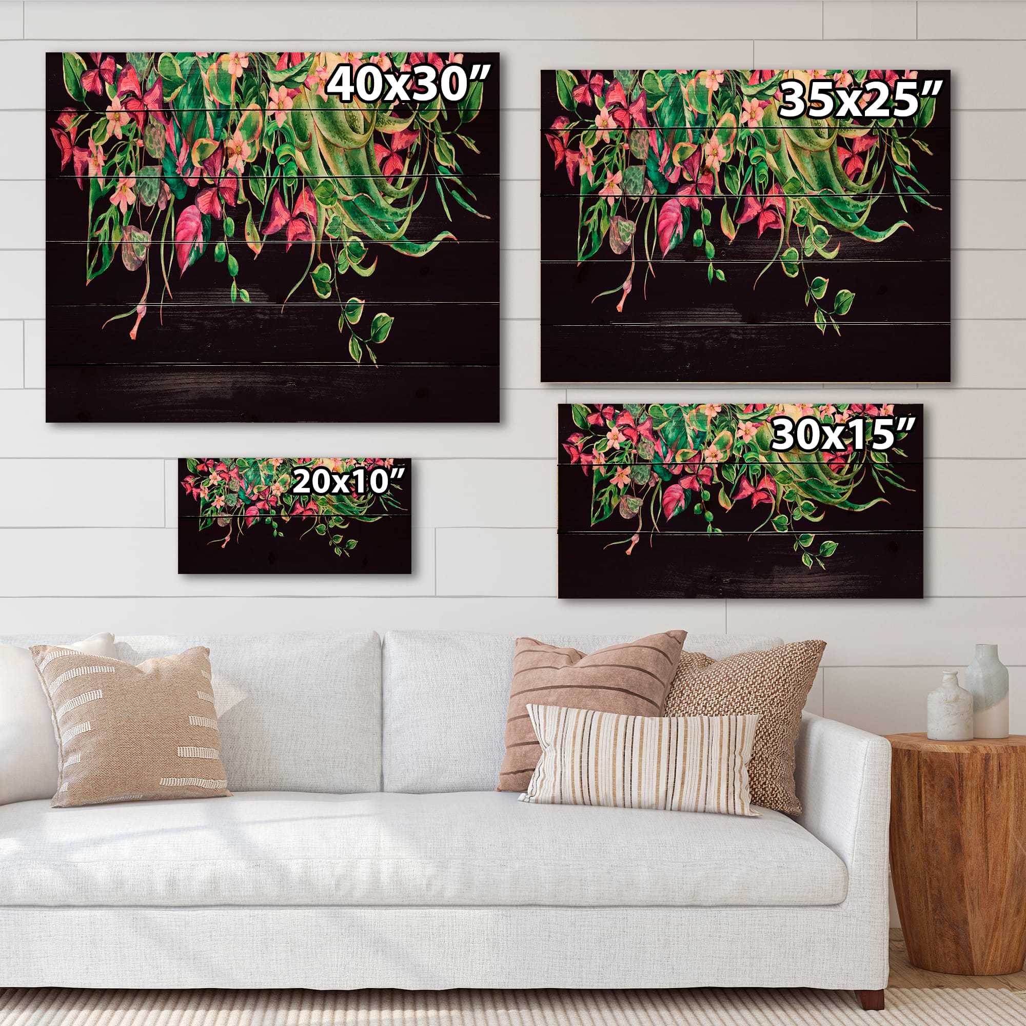 Designart - Floral Tropical Leaves Om Black - Farmhouse Print on Natural Pine Wood
