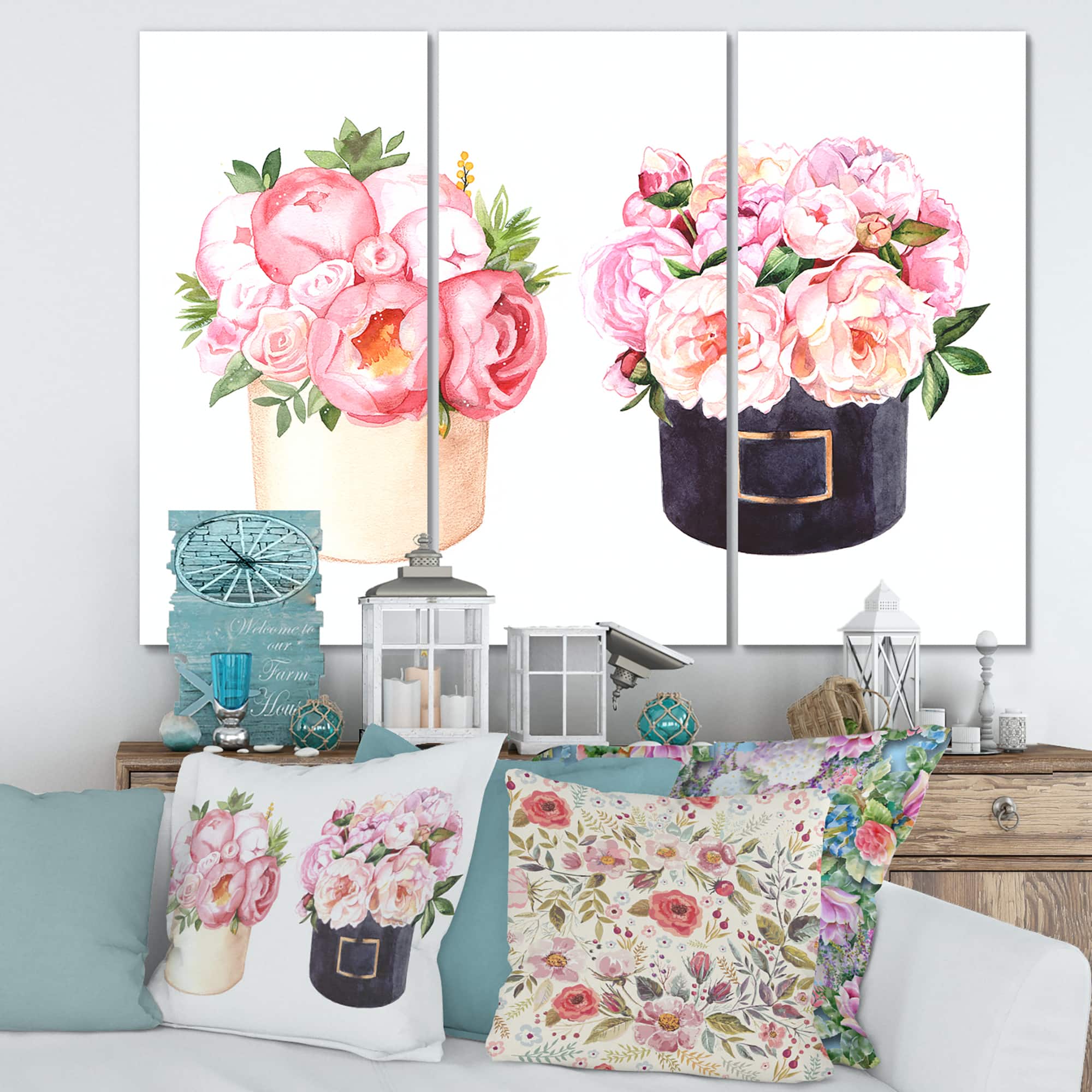 Designart - Flower Box With Peonies and Rose - Farmhouse Canvas Wall Art Print