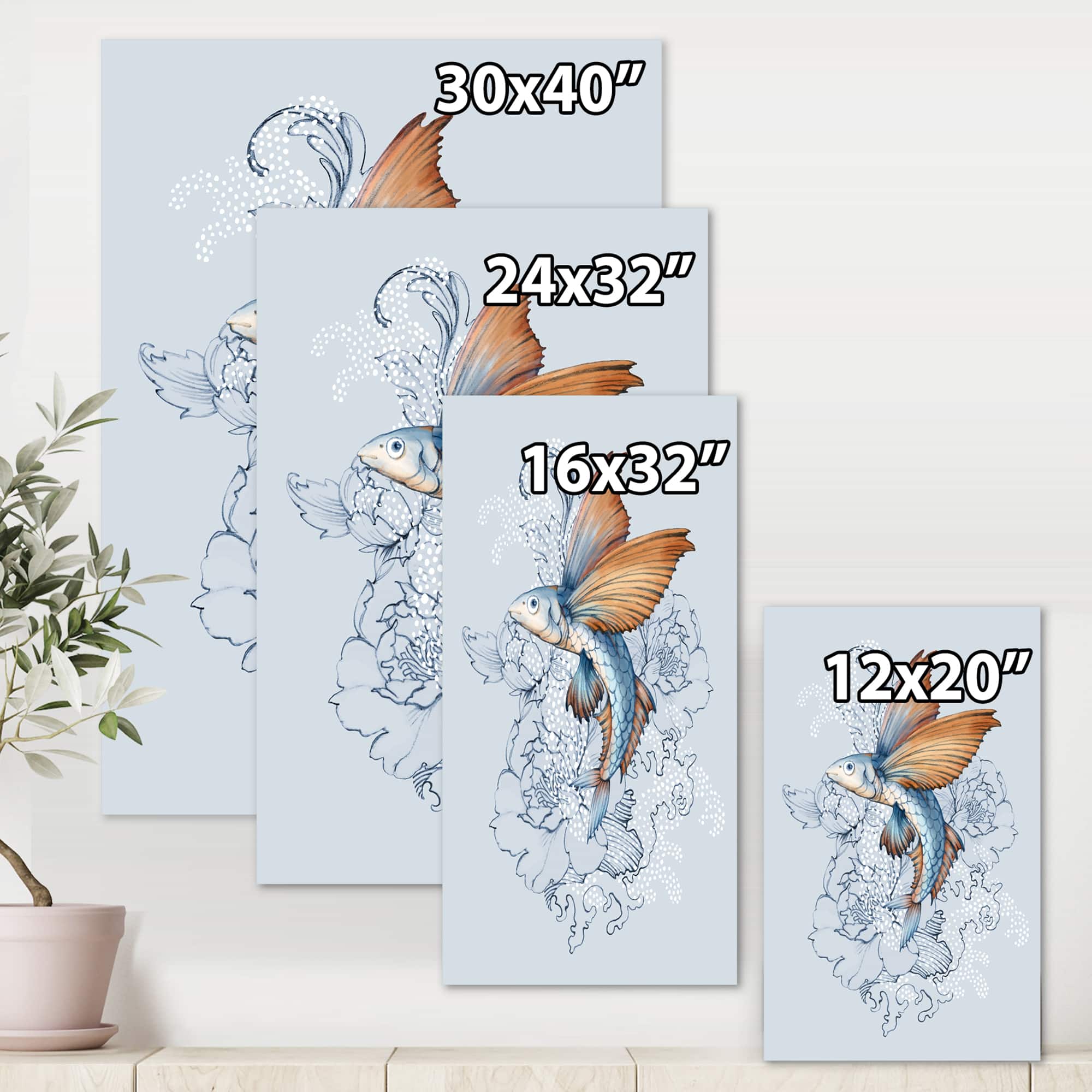 Designart - Flying Fish On Peonies - Traditional Canvas Wall Art Print