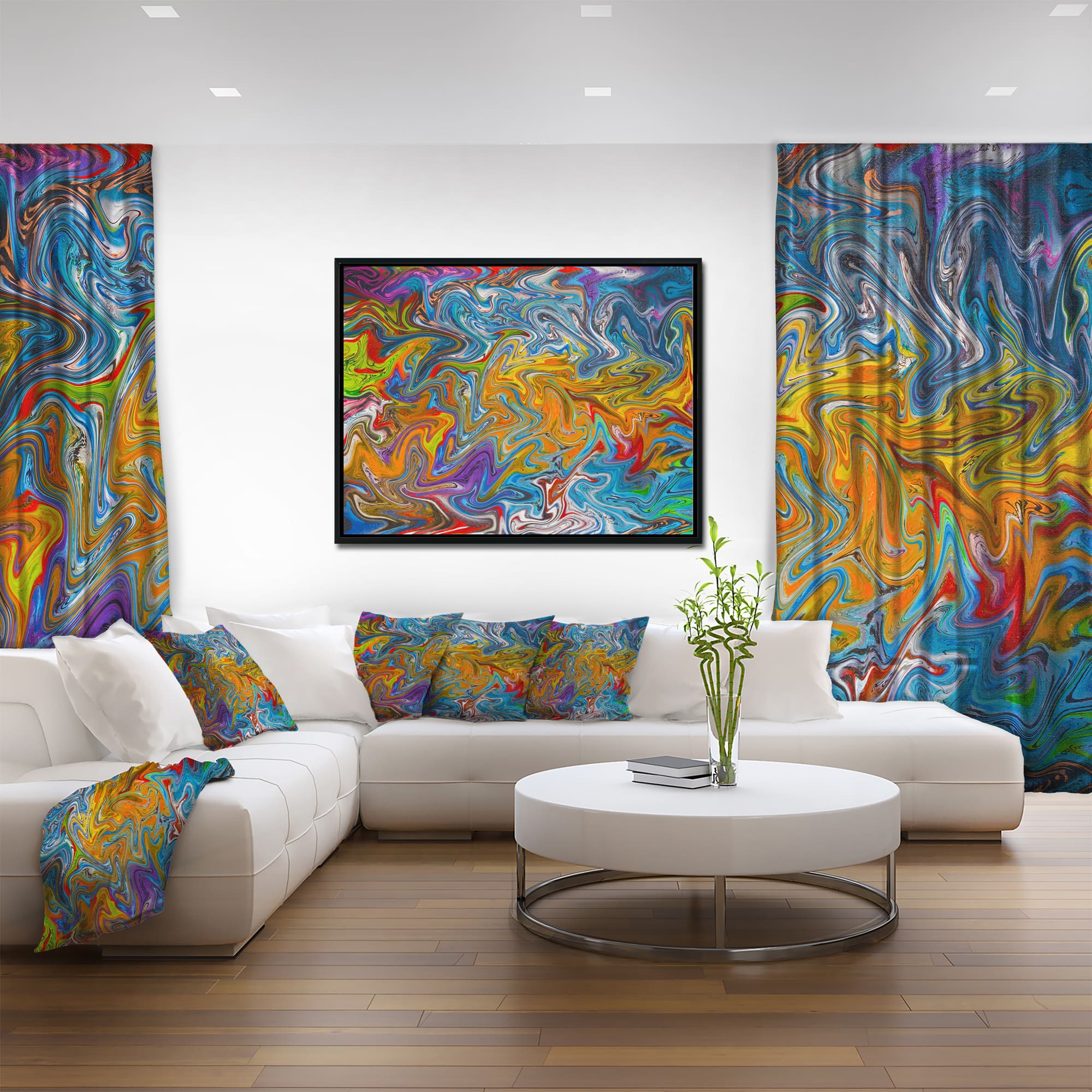 Designart - Fractal Flowing Colors - Abstract Framed Canvas Art Print