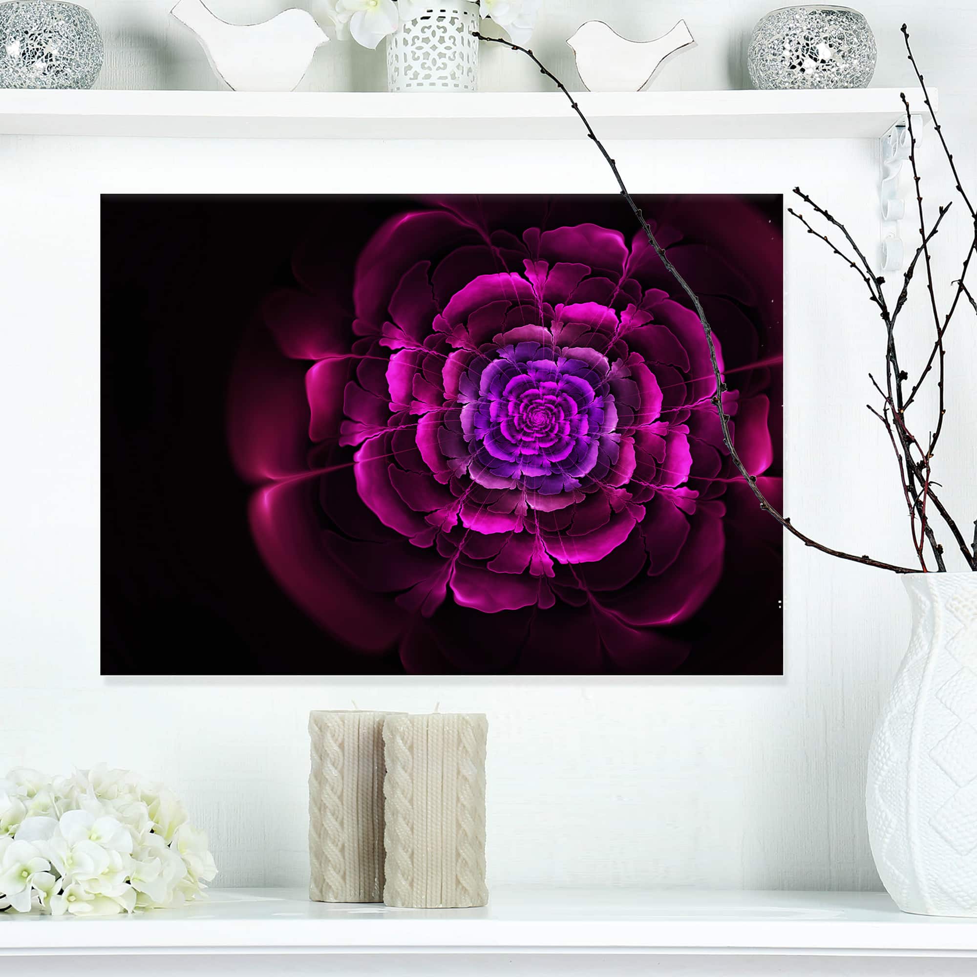 Designart - Fractal Purple Rose in Dark - Floral Canvas Art print