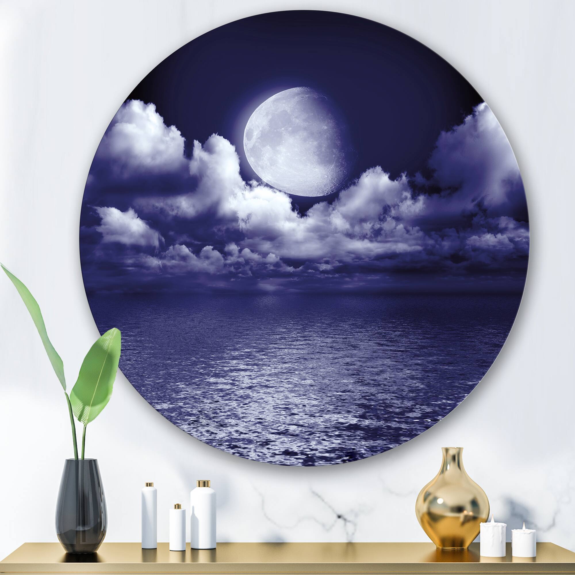 Designart - Full Moon In Cloudy Night Sky V - Nautical & Coastal Metal Circle Wall Art