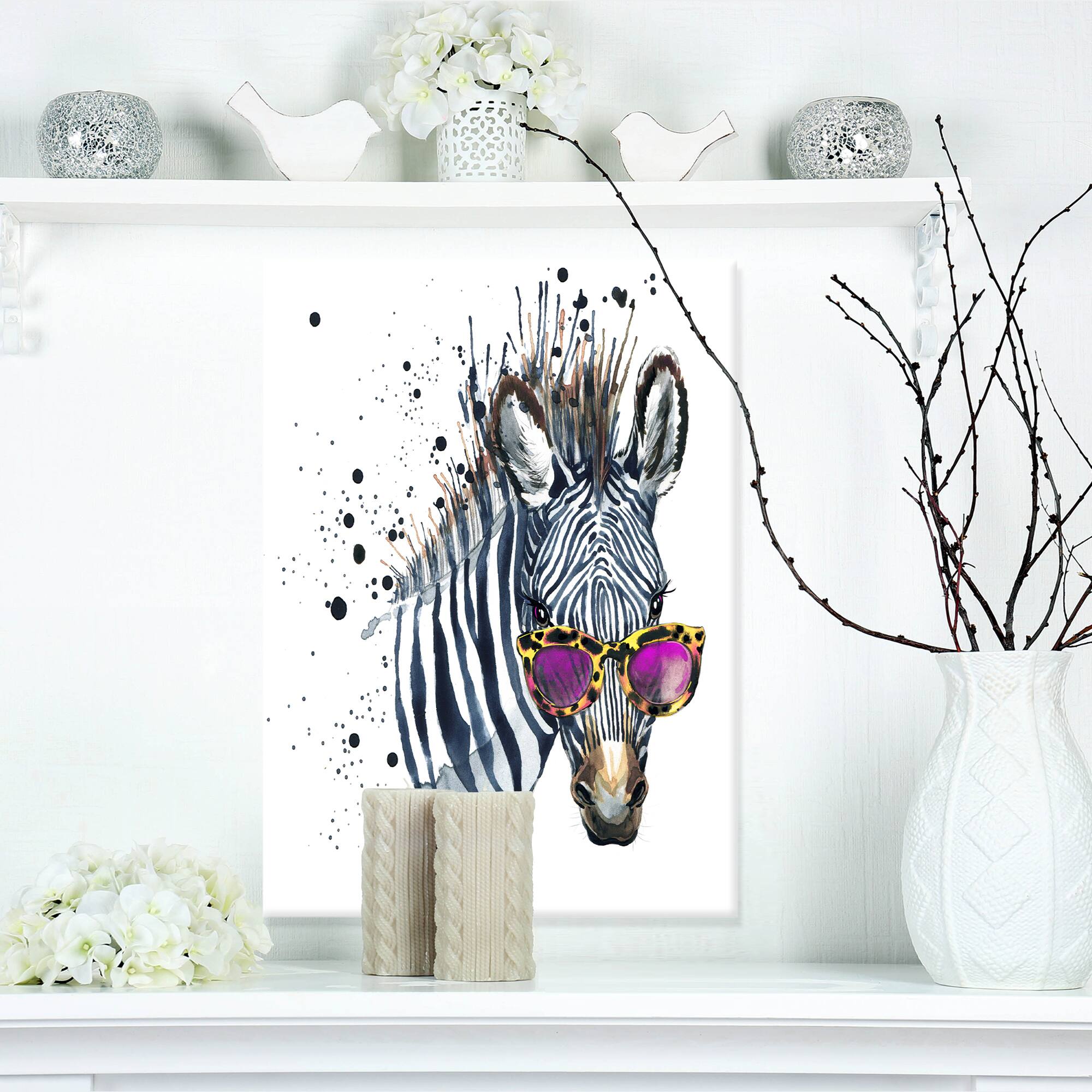Designart - Funny Zebra Watercolor - Animal Canvas Art Print