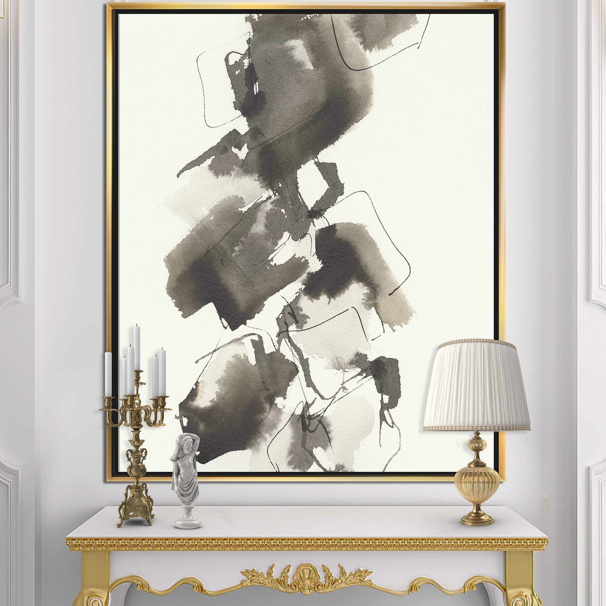 Designart - Geometric Glam Square I - Modern & Contemporary Canvas in Gold Frame