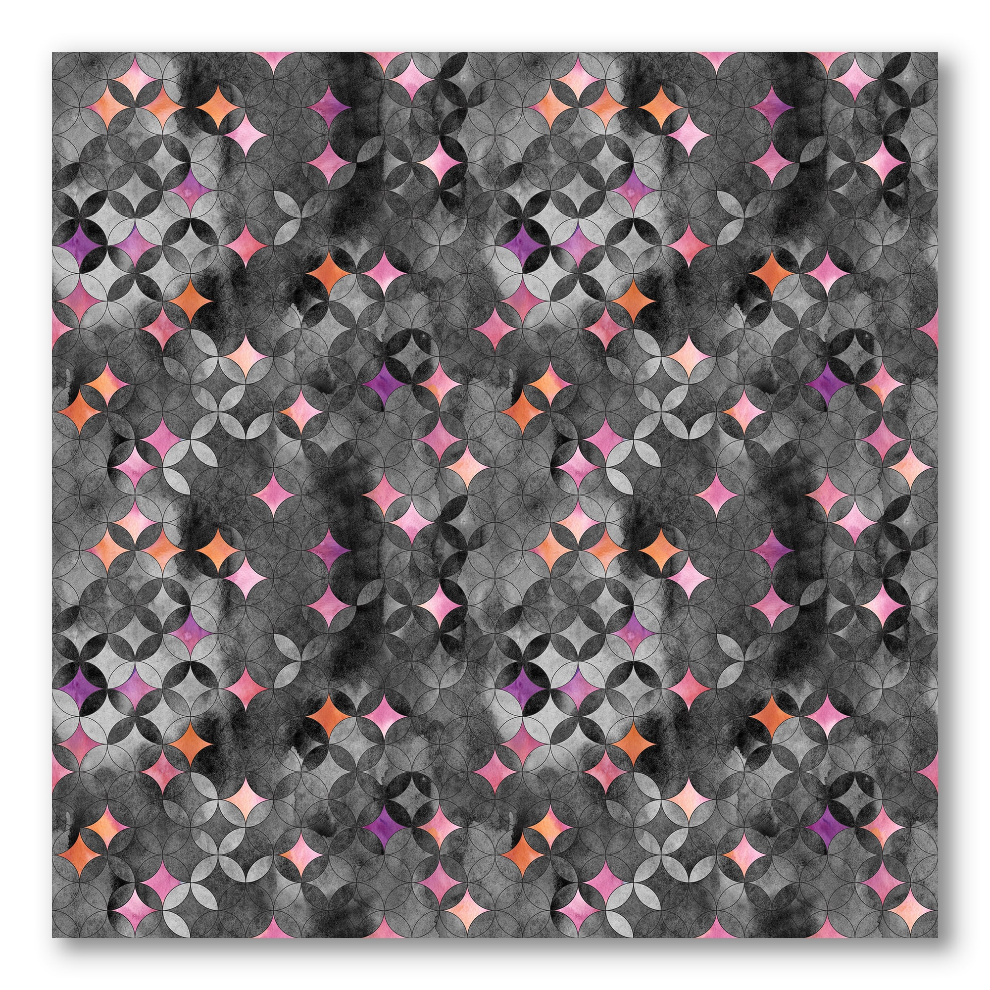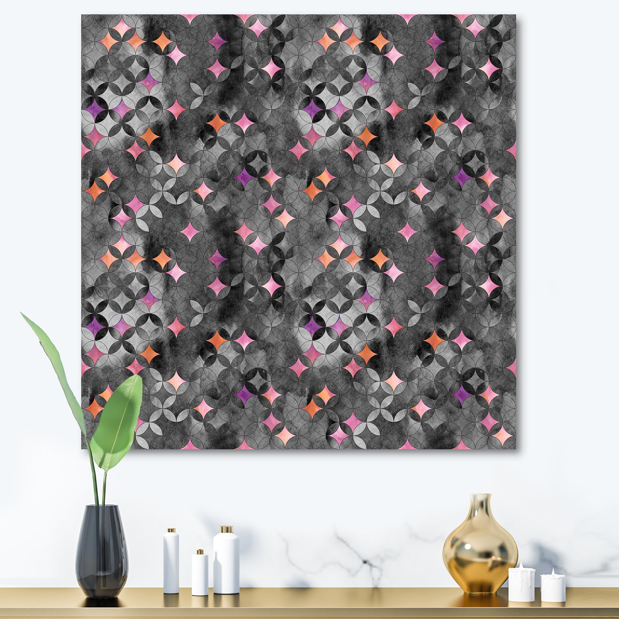 Designart - Geometry Intersecting Circles With Pink Stars - Modern Canvas Wall Art Print