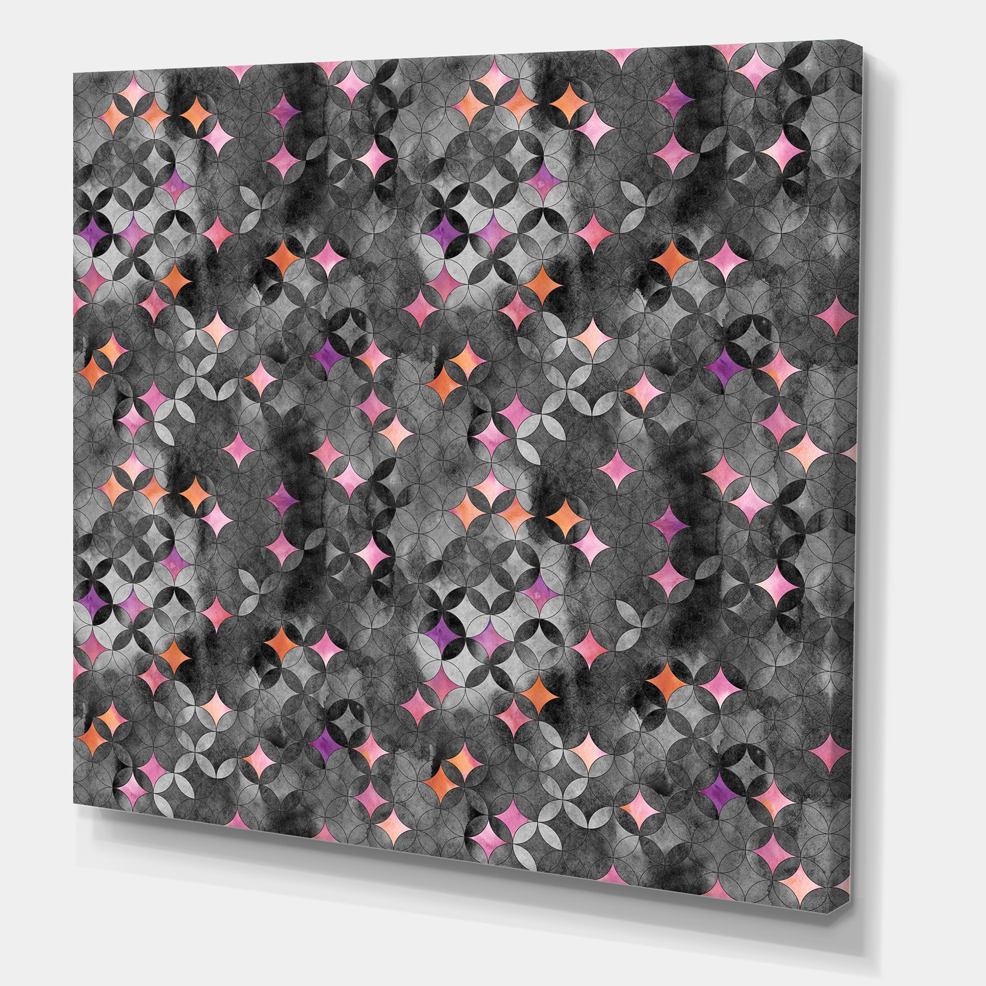 Designart - Geometry Intersecting Circles With Pink Stars - Modern Canvas Wall Art Print