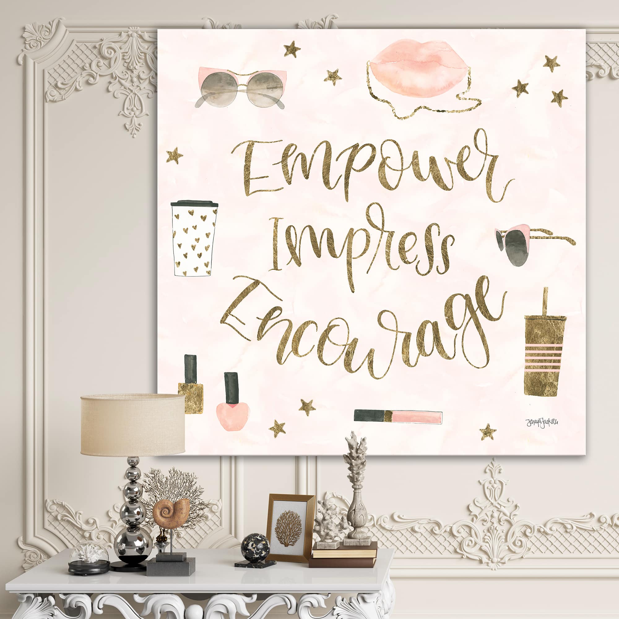 Designart - Glam Pink Ladies V - Fashion Premium Canvas Wall Art