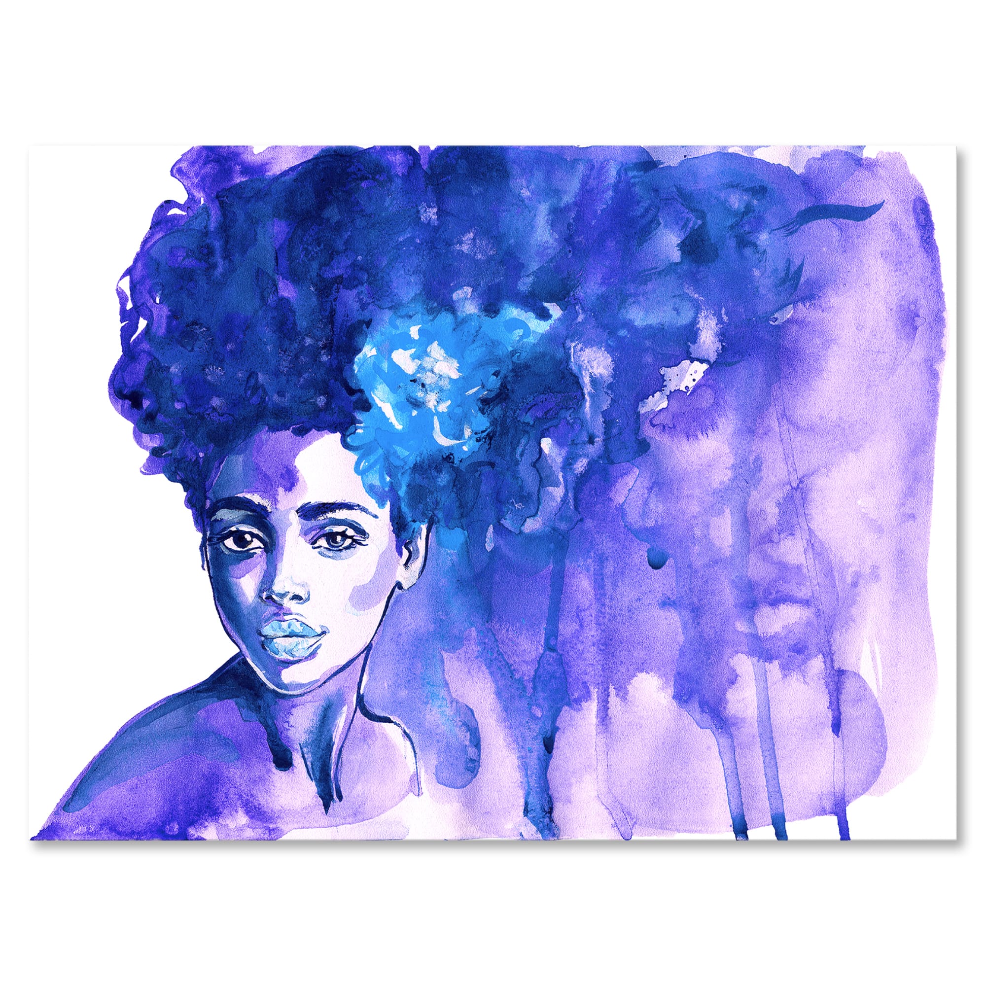 Designart - Glorious Blue Portrait of African American Woman - Modern Canvas Wall Art Print