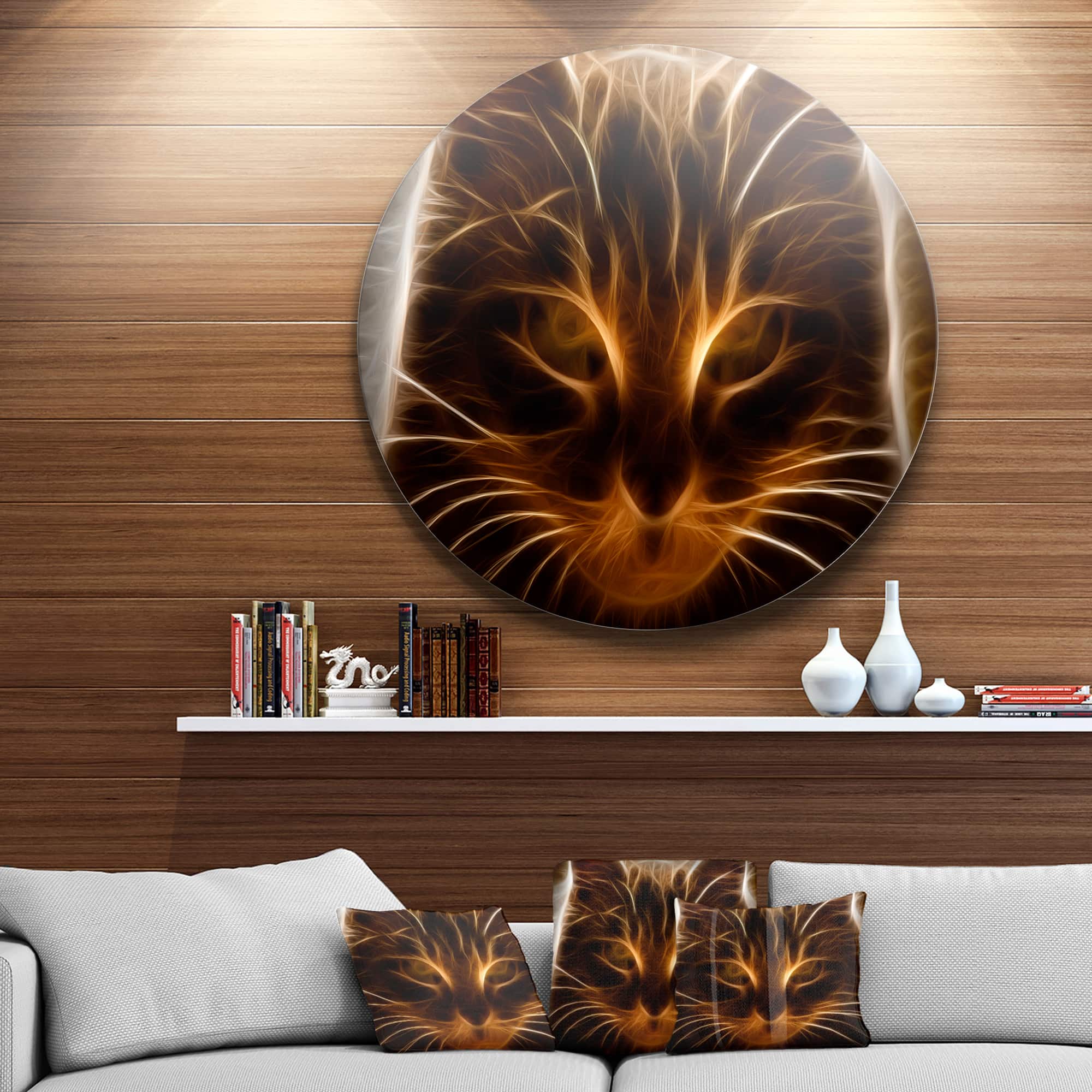 Designart - Glowing Fractal Cat Illustration' Ultra Vibrant Animal Metal Circle Wall Art