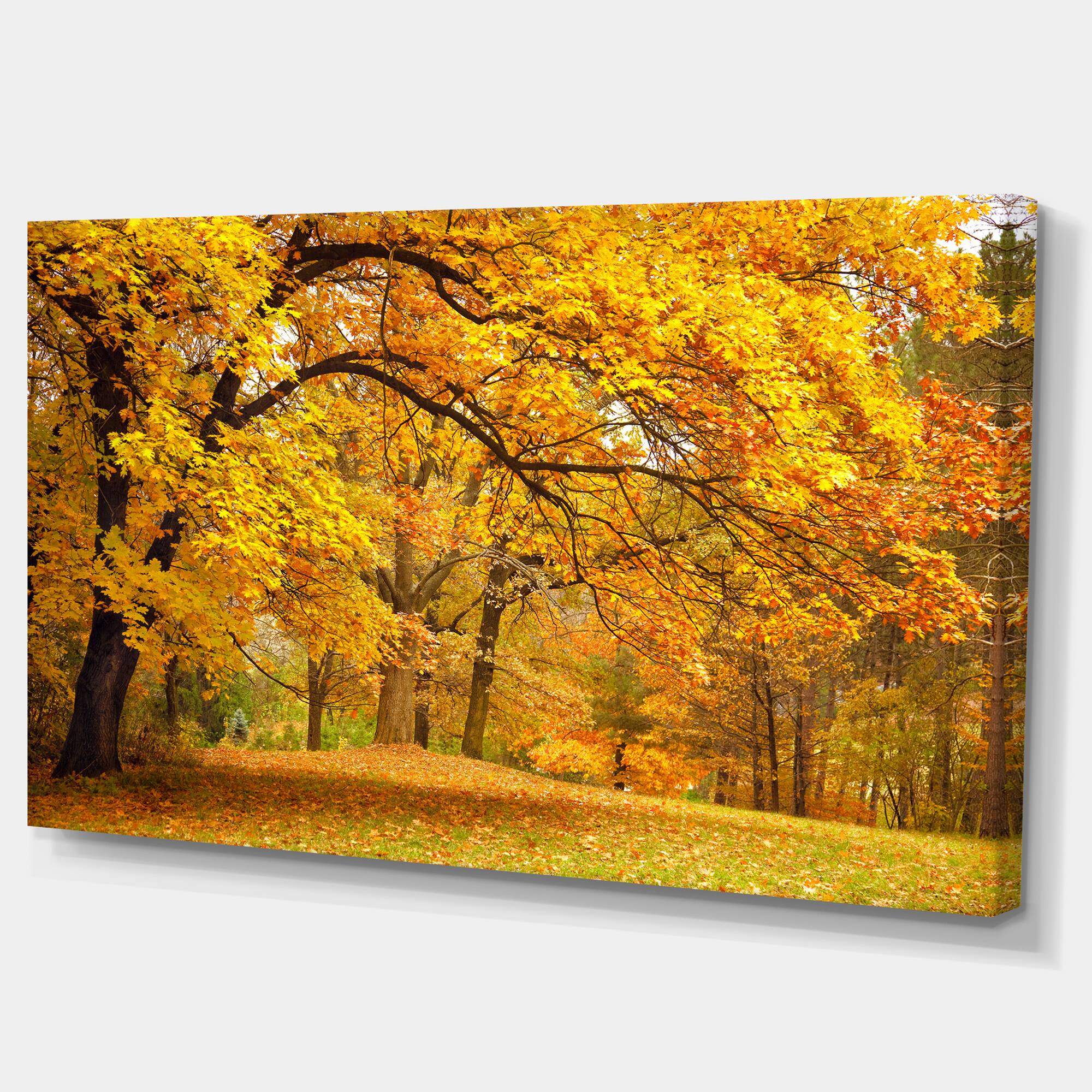 Designart - Golden Autumn Forest - Landscape Photography Canvas Print