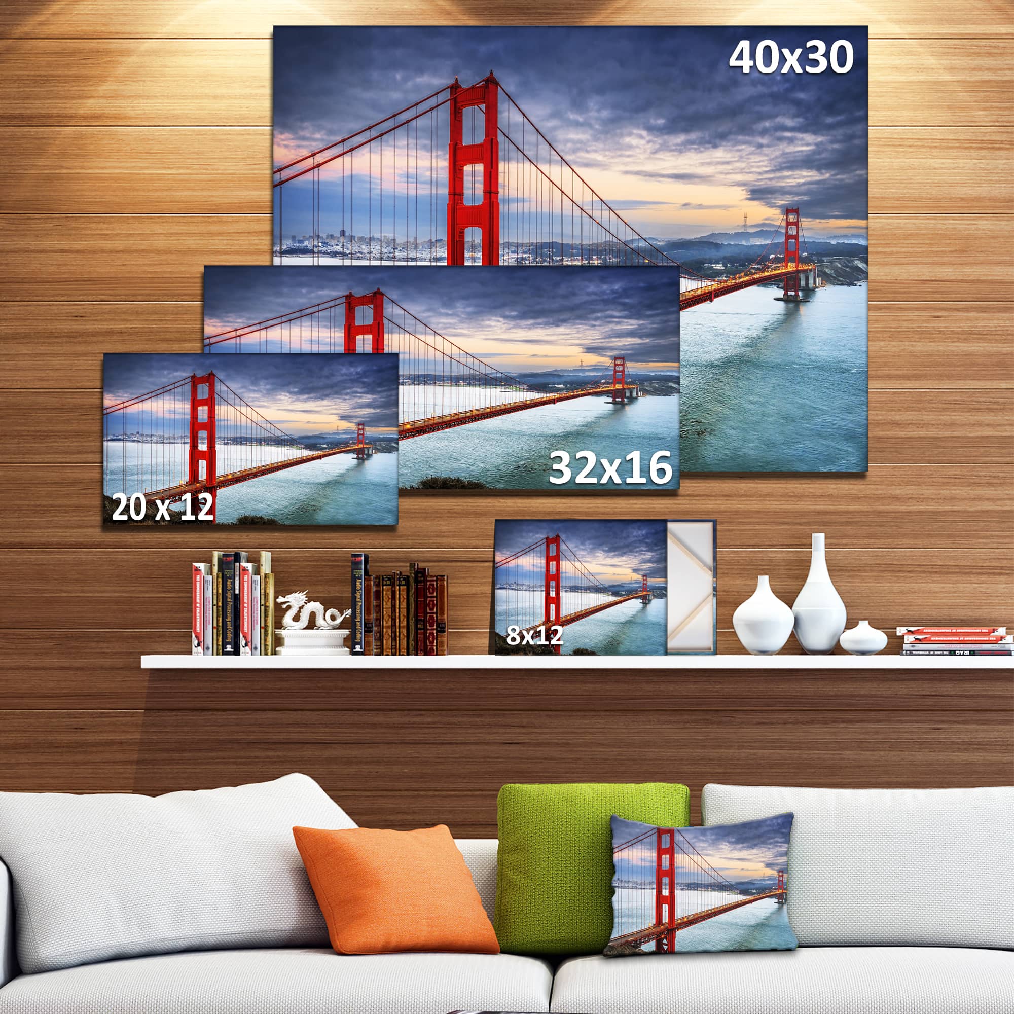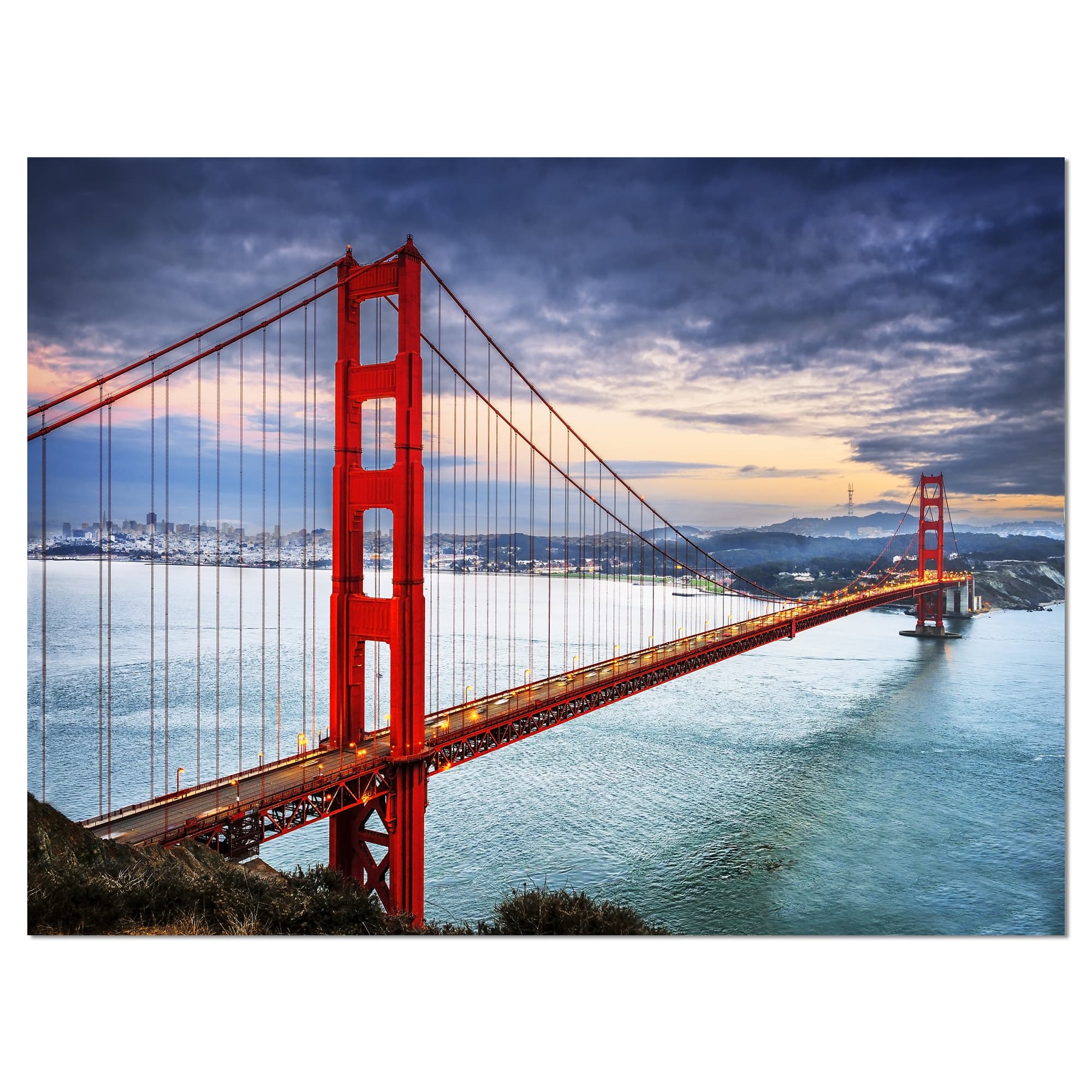 Designart - Golden Gate under Cloudy Sky - Sea Bridge Canvas Art Print