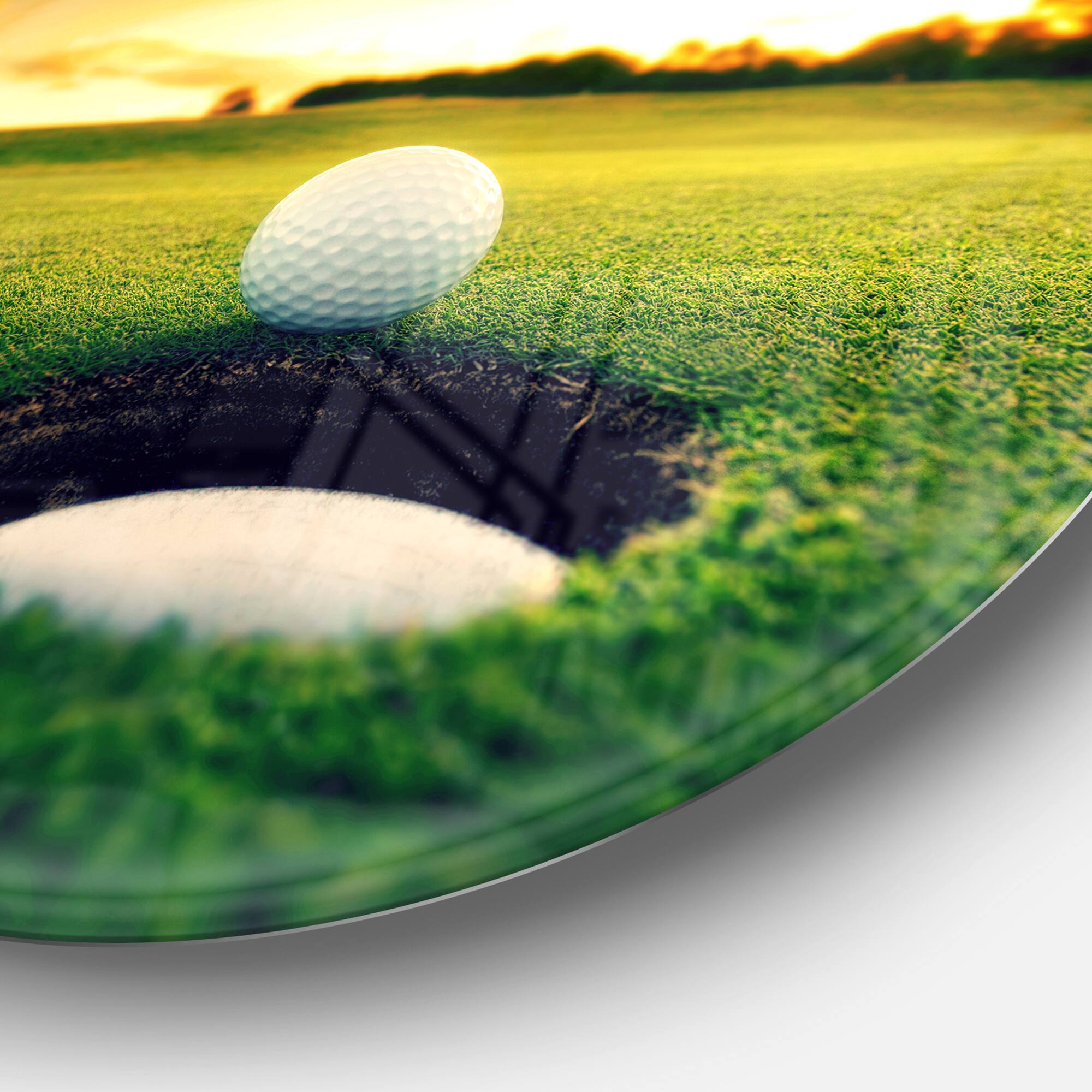 Designart - Golf Ball Near Hole' Landscape Metal Circle Wall Art