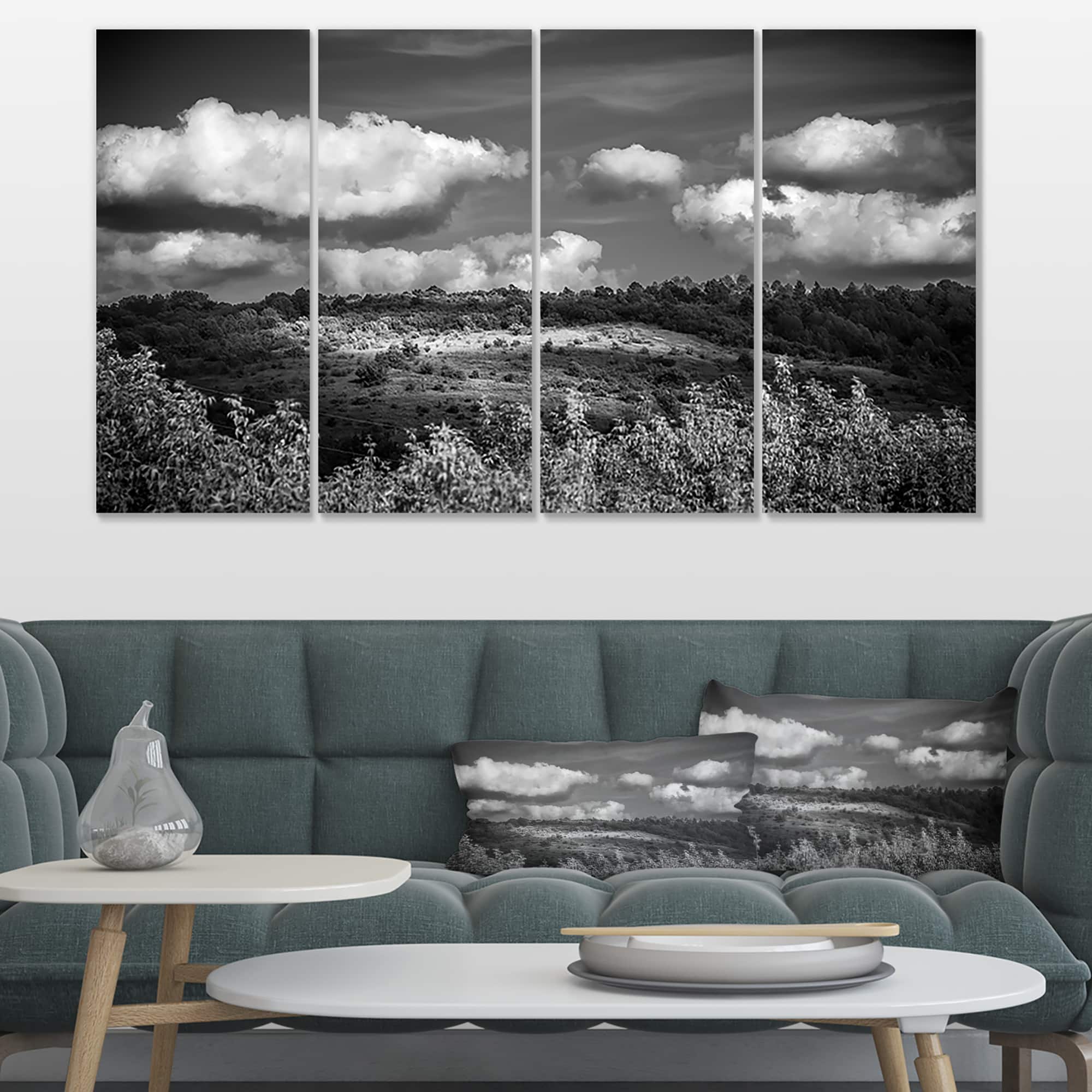 Designart - Green Hills under Cloudy Sky - Extra Large Wall Art Landscape
