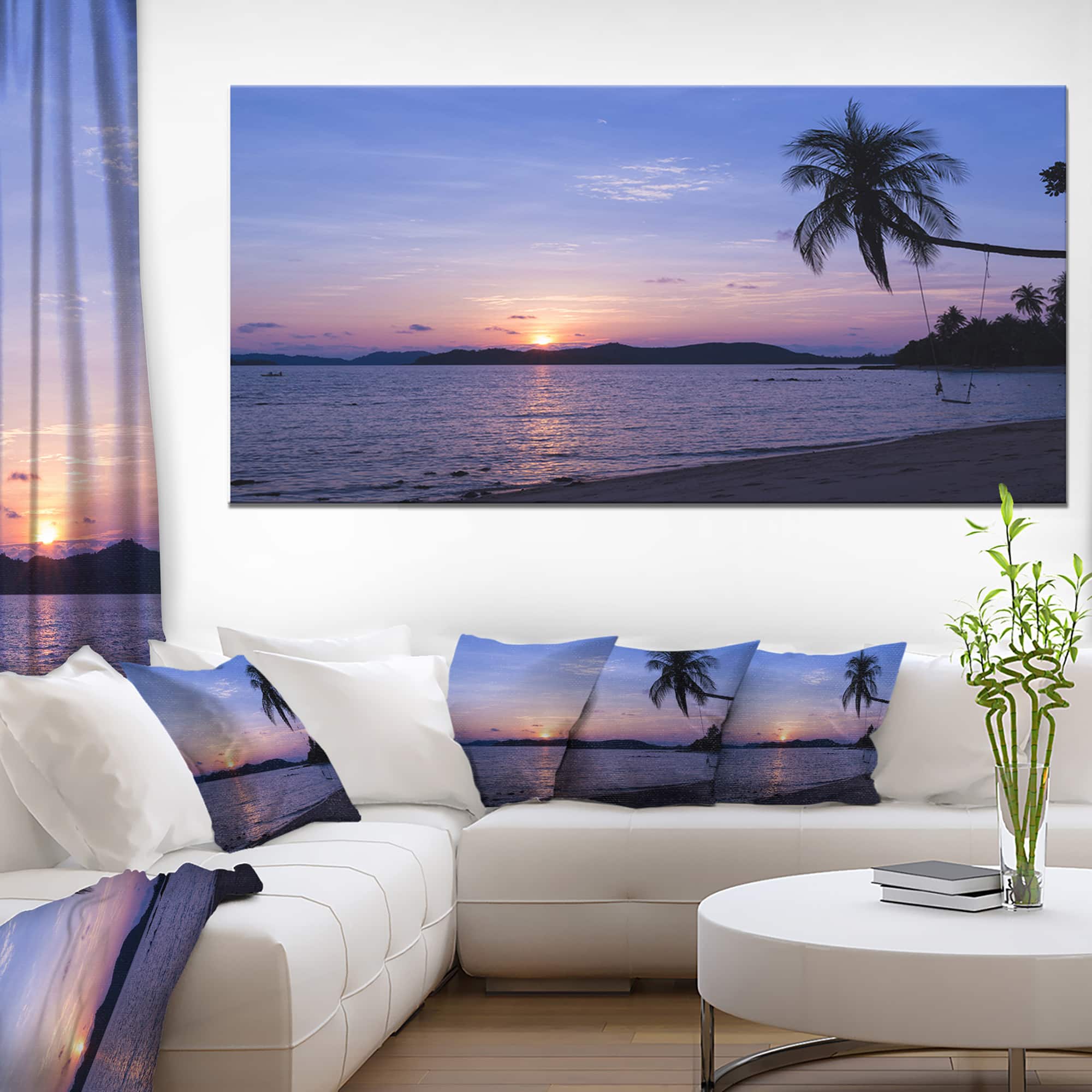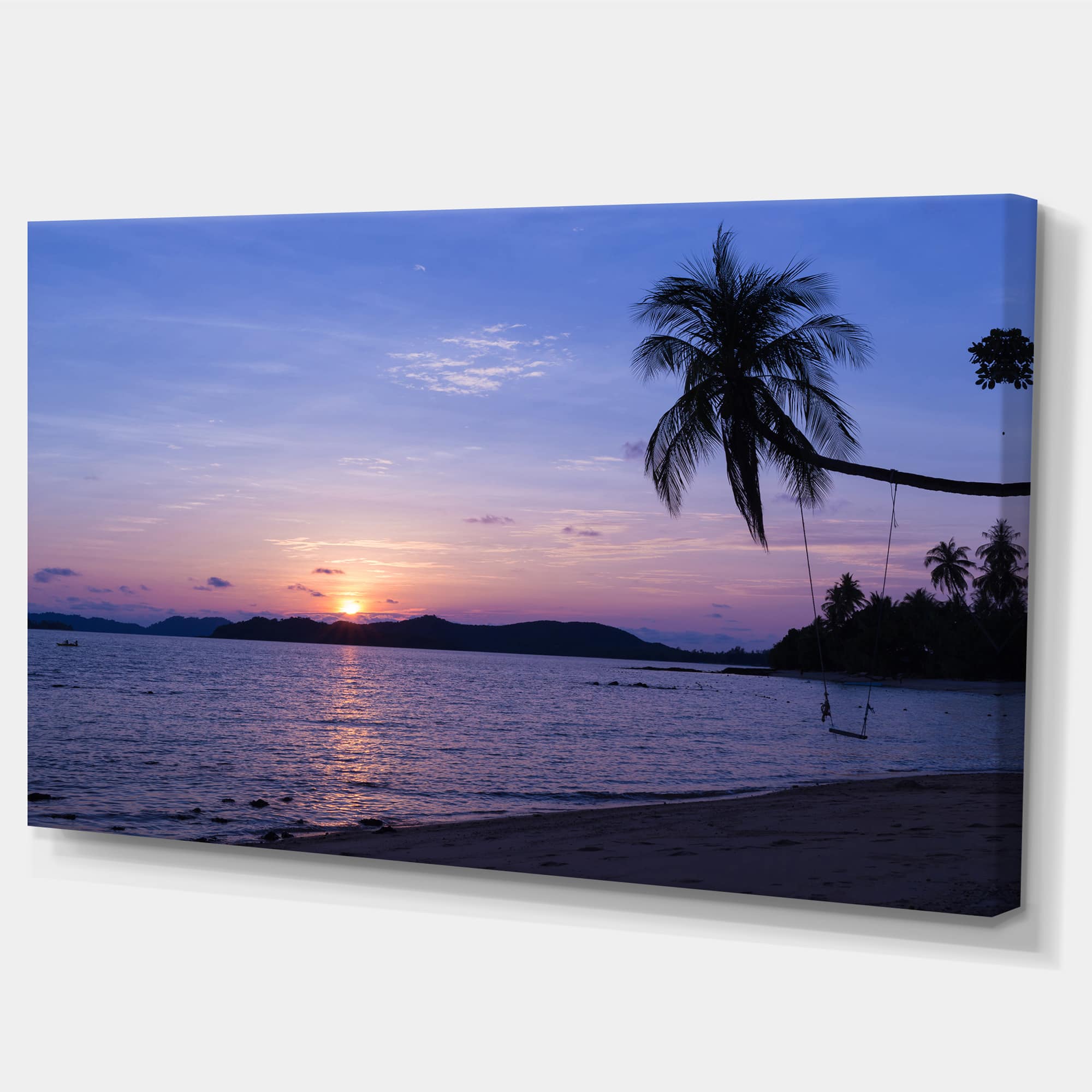 Designart - Hanging Seat in Blue Sunset Beach - Modern Seashore Canvas Art