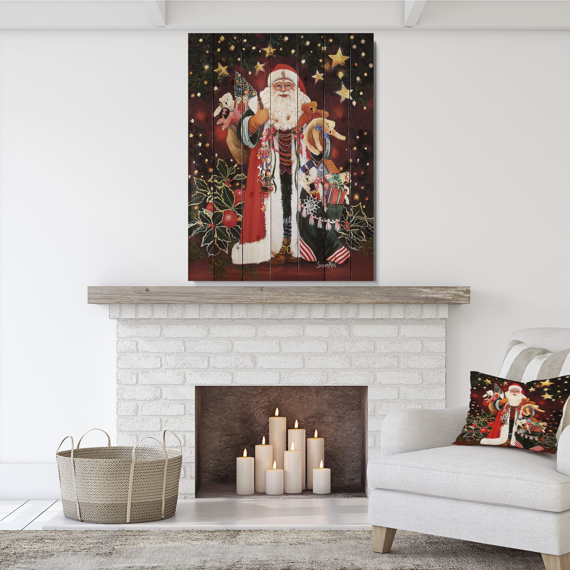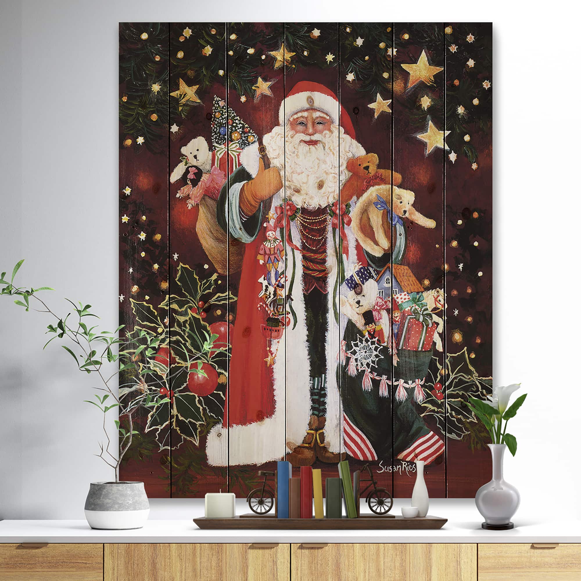 Designart Happy Santa Claus Christmas Print on Natural Pine Wood