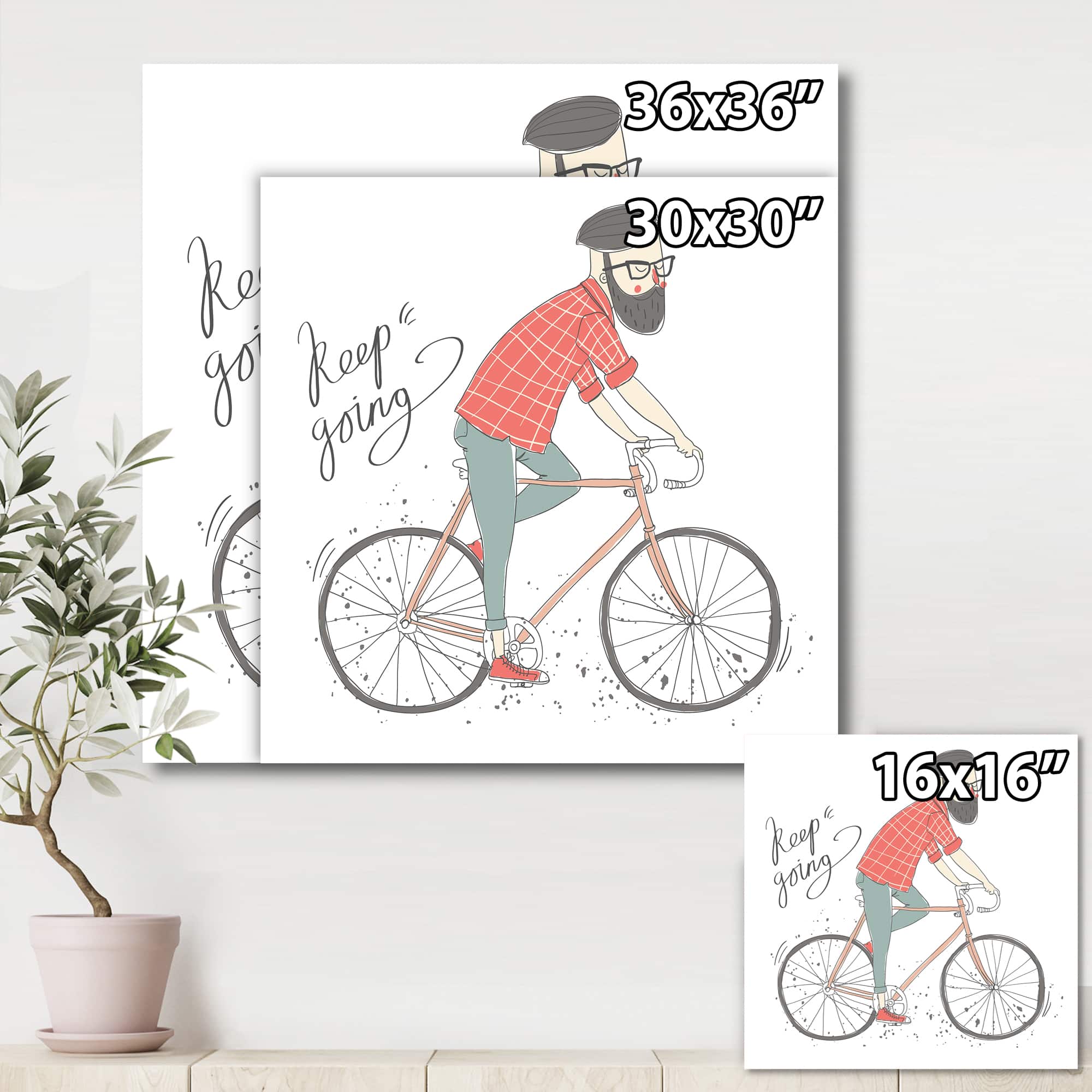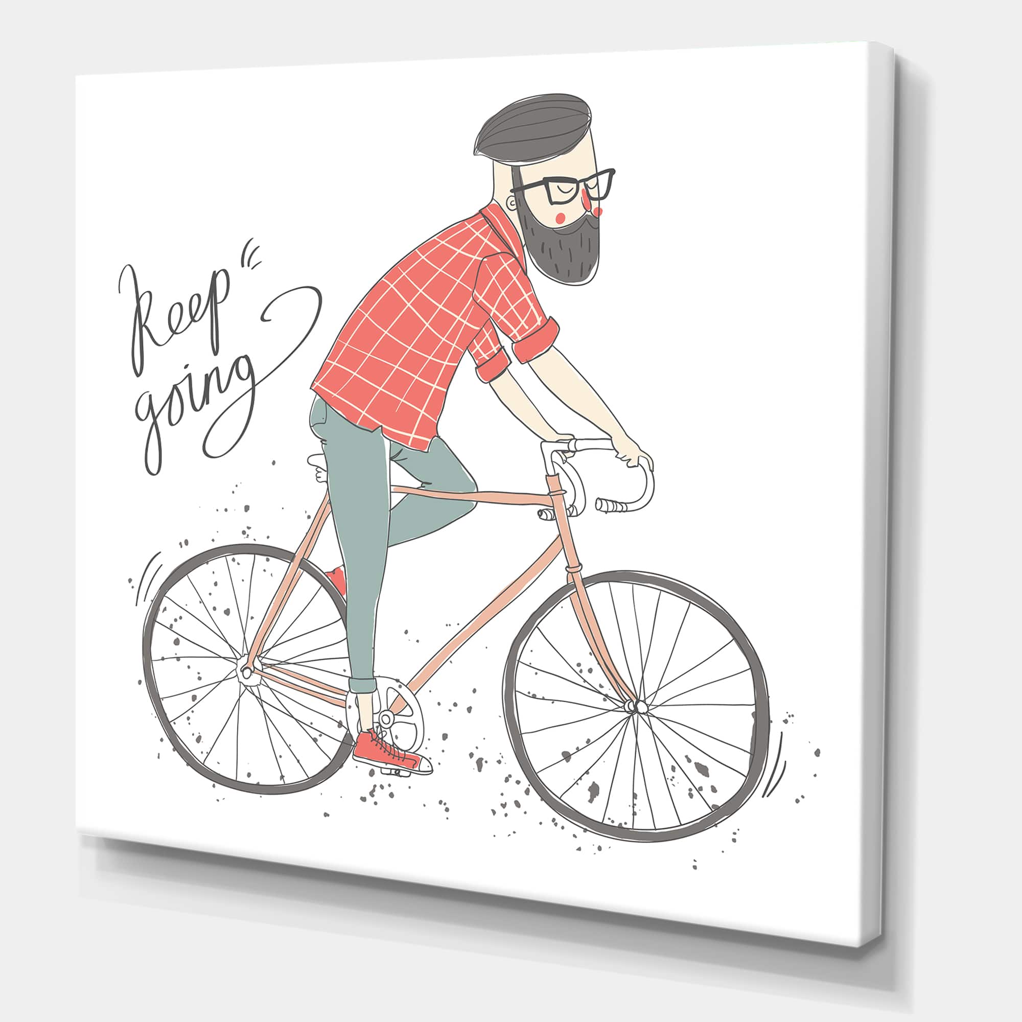 Designart - Hipster Man On A Bicycle - Children's Art Canvas Wall Art Print