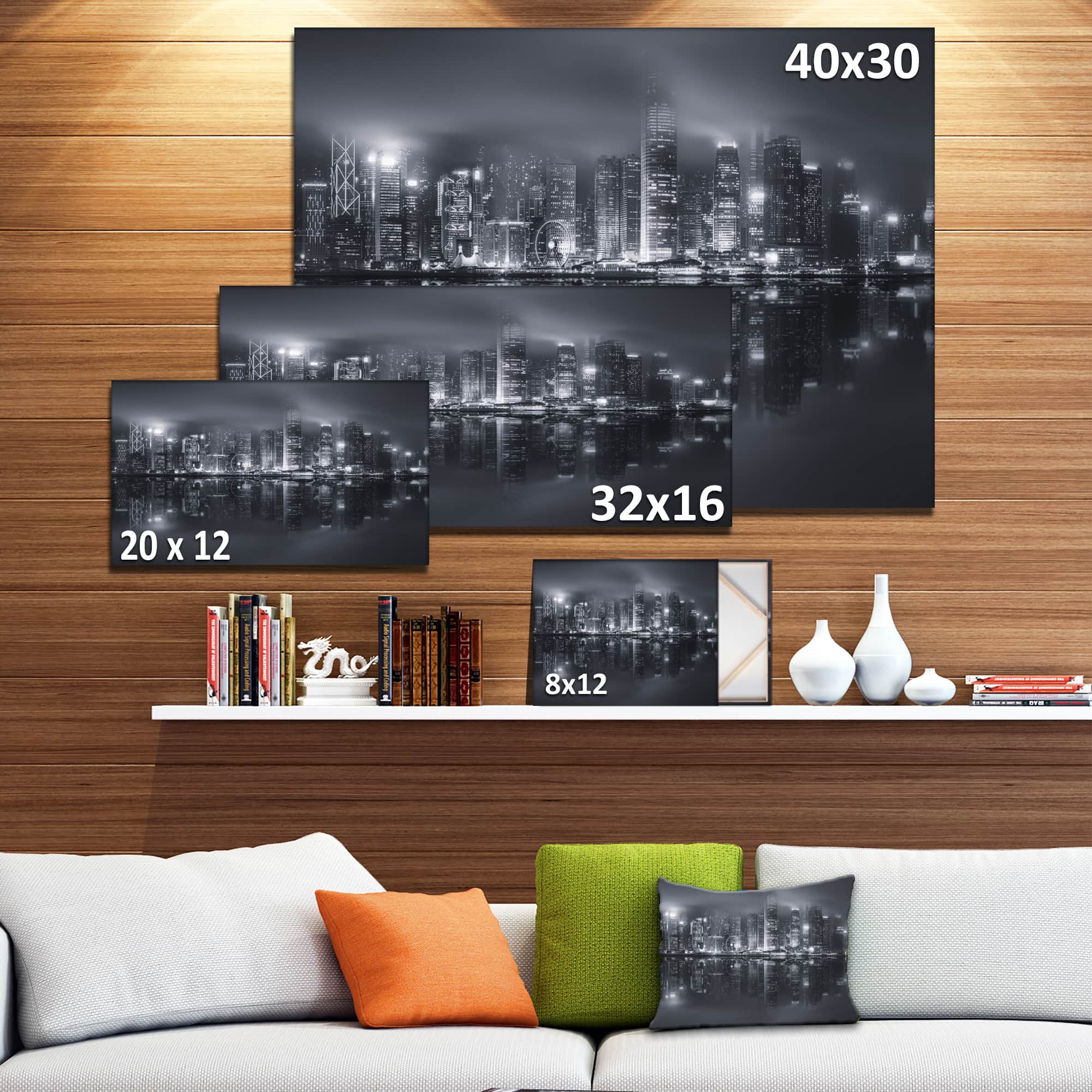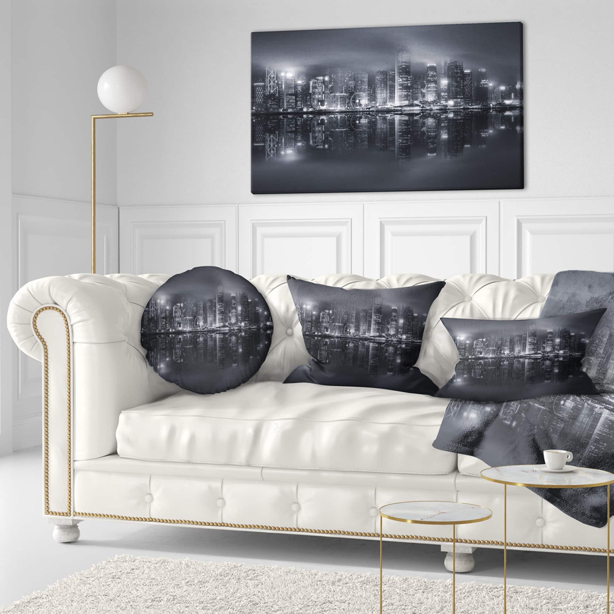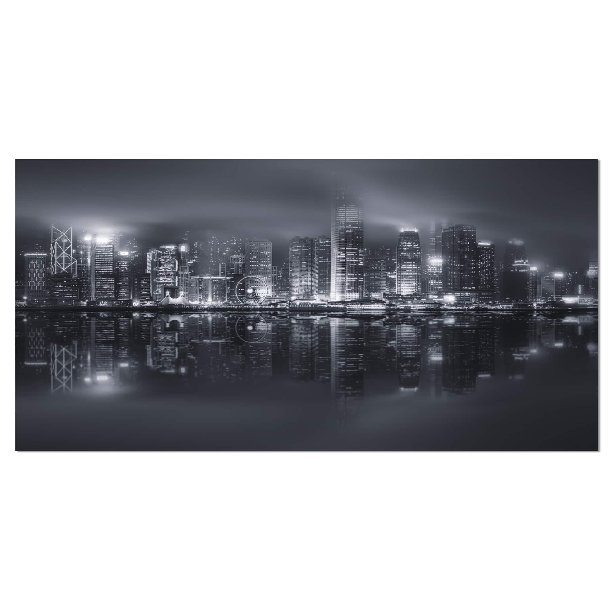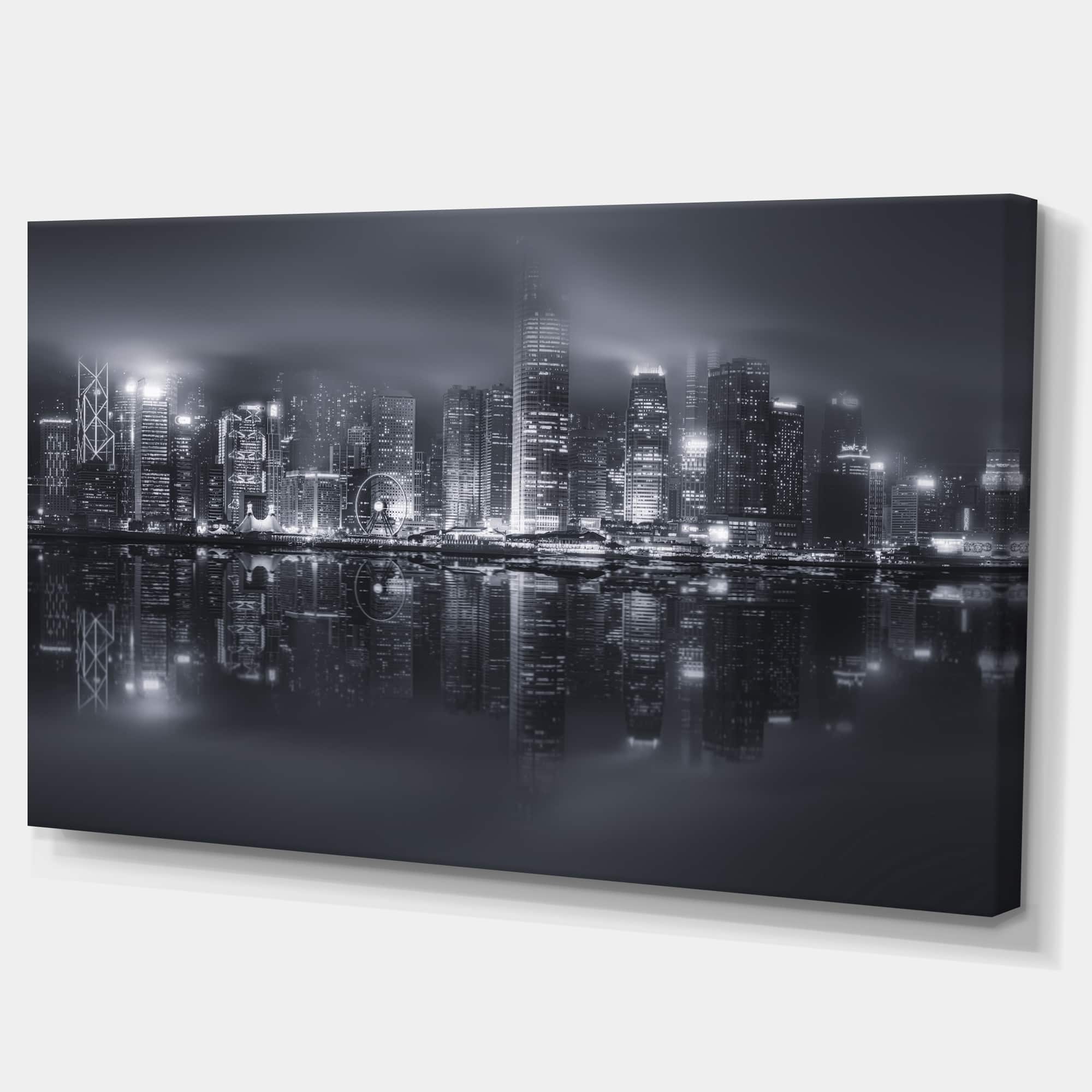 Designart - Hong Kong Black and White Skyline - Cityscape Canvas Art Print