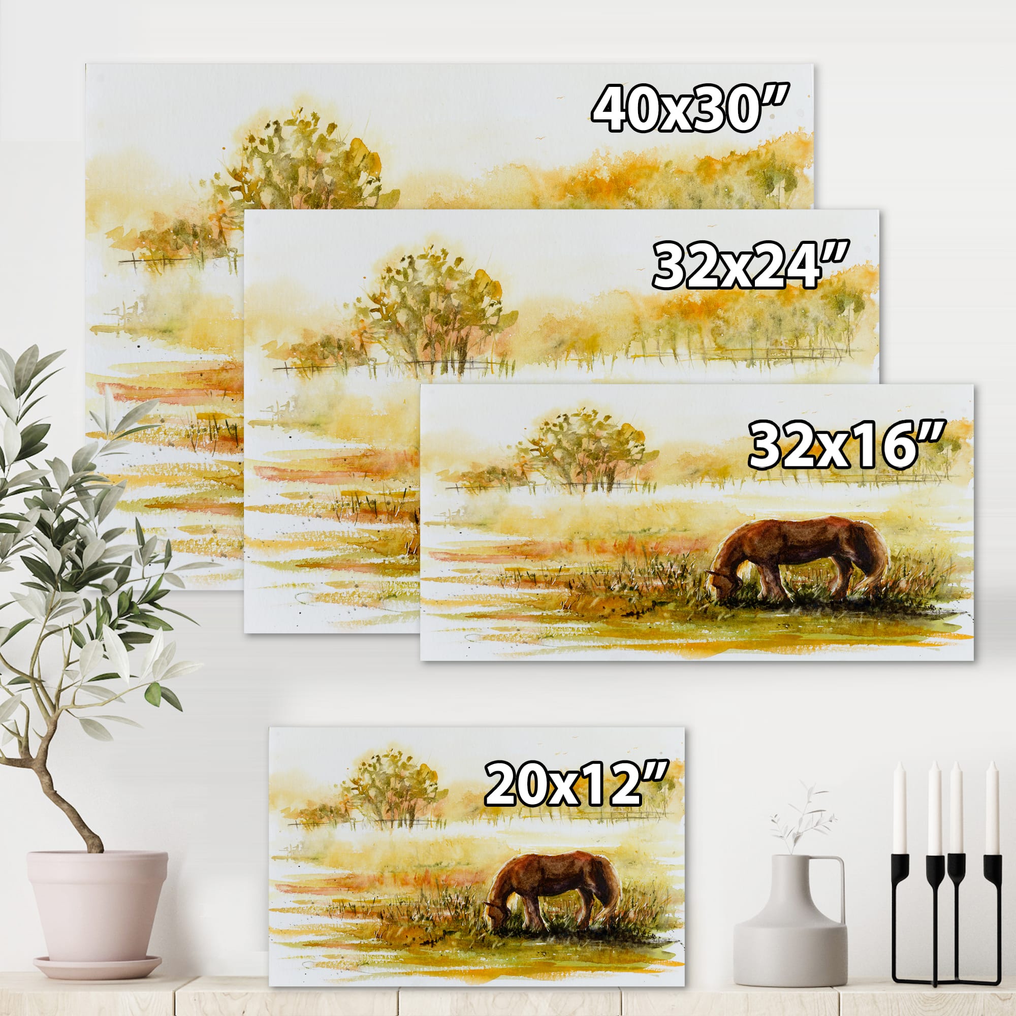 Designart - Horse Grazing On A Meadow - Farmhouse Canvas Wall Art Print