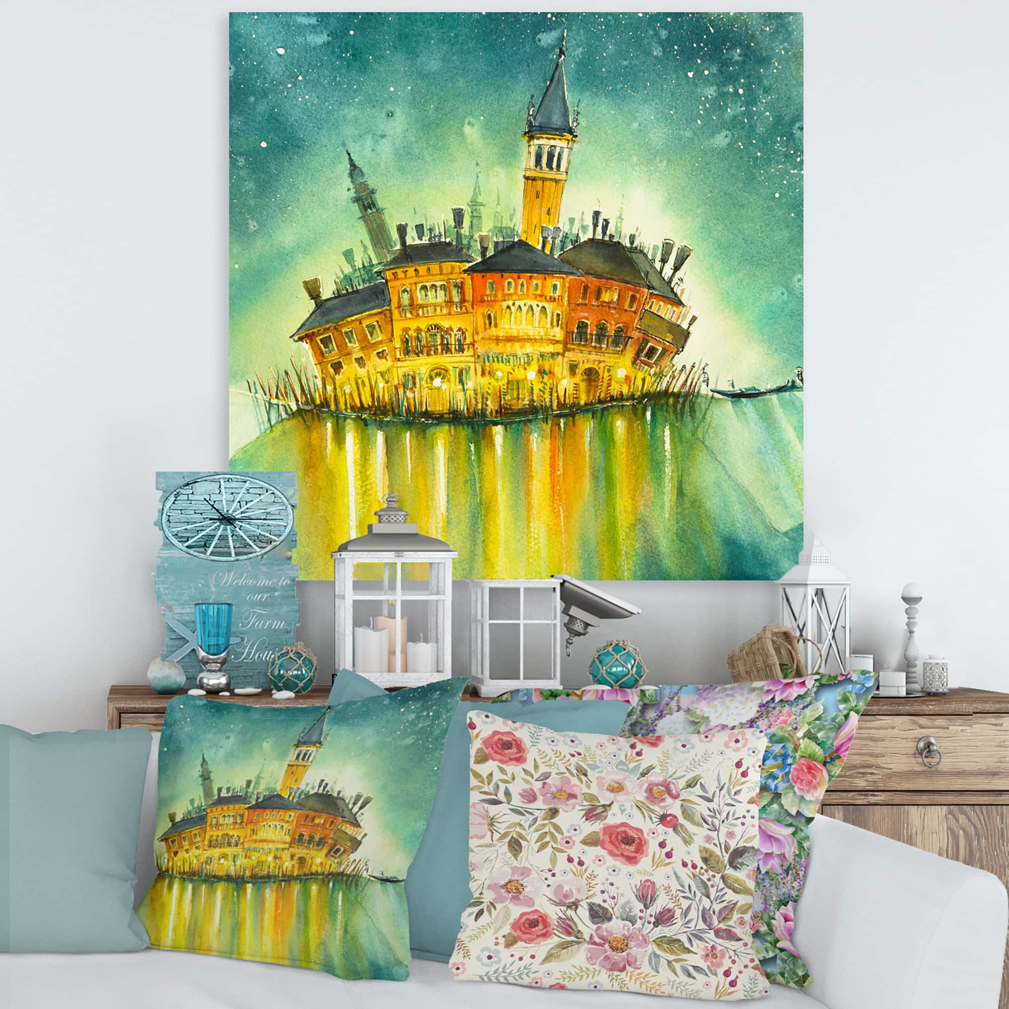 Designart - Idyllic Island of Venice At Night - Modern Canvas Wall Art Print