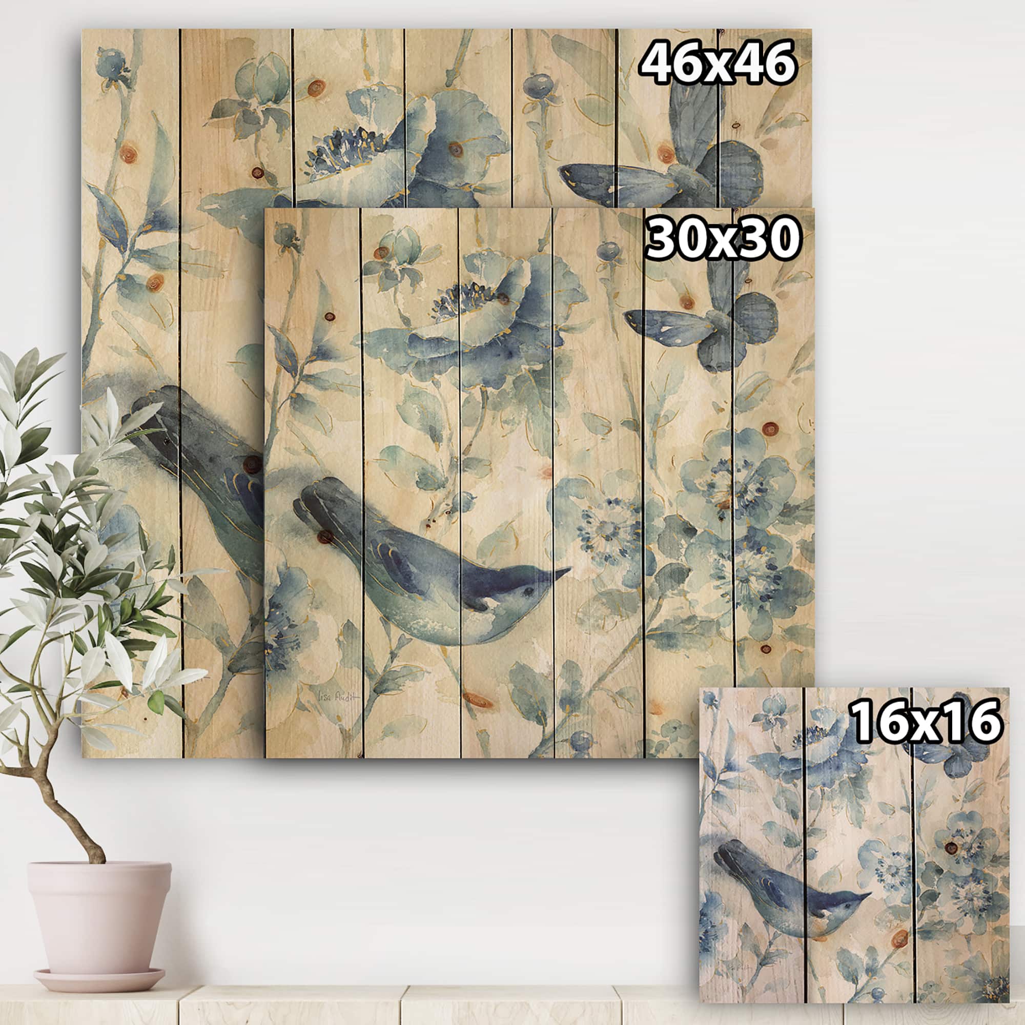 Designart - Indigold Bird Cottage Family II - Farmhouse Print on Natural Pine Wood