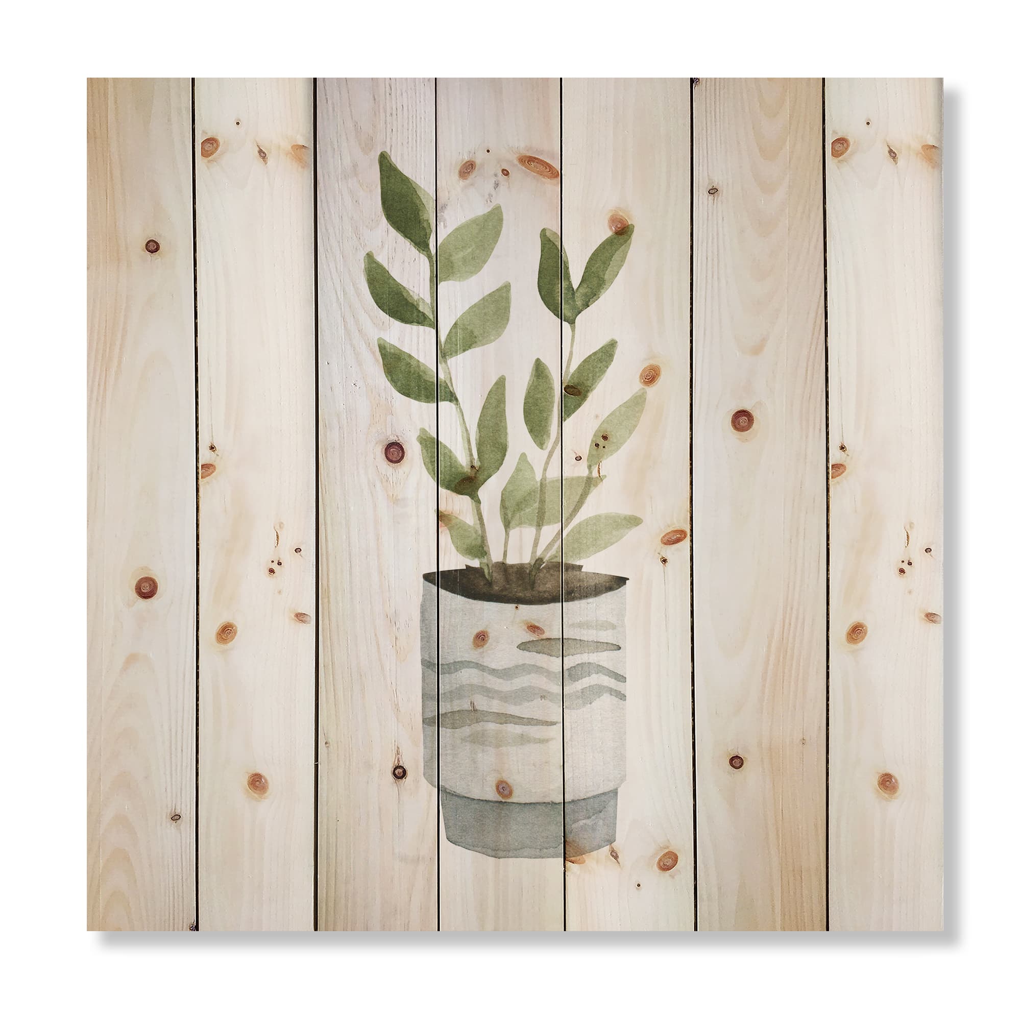 Designart - Indoor Green Home House Plants II - Traditional Print on Natural Pine Wood
