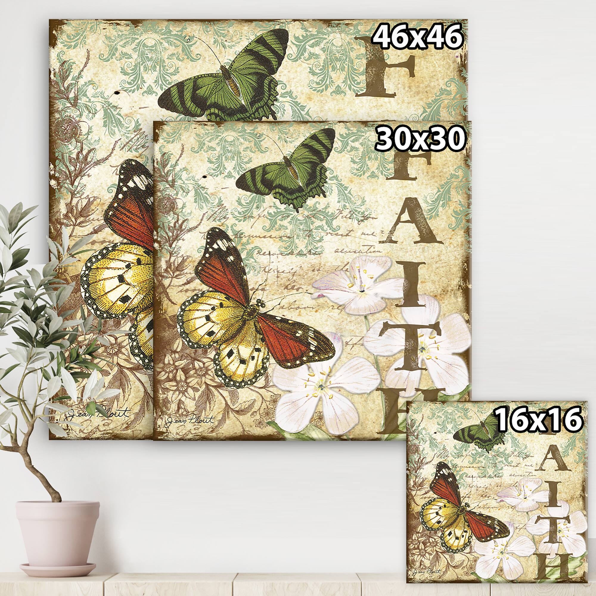 Designart - Inspirational Butterflies Faith - Cottage Canvas Art Print