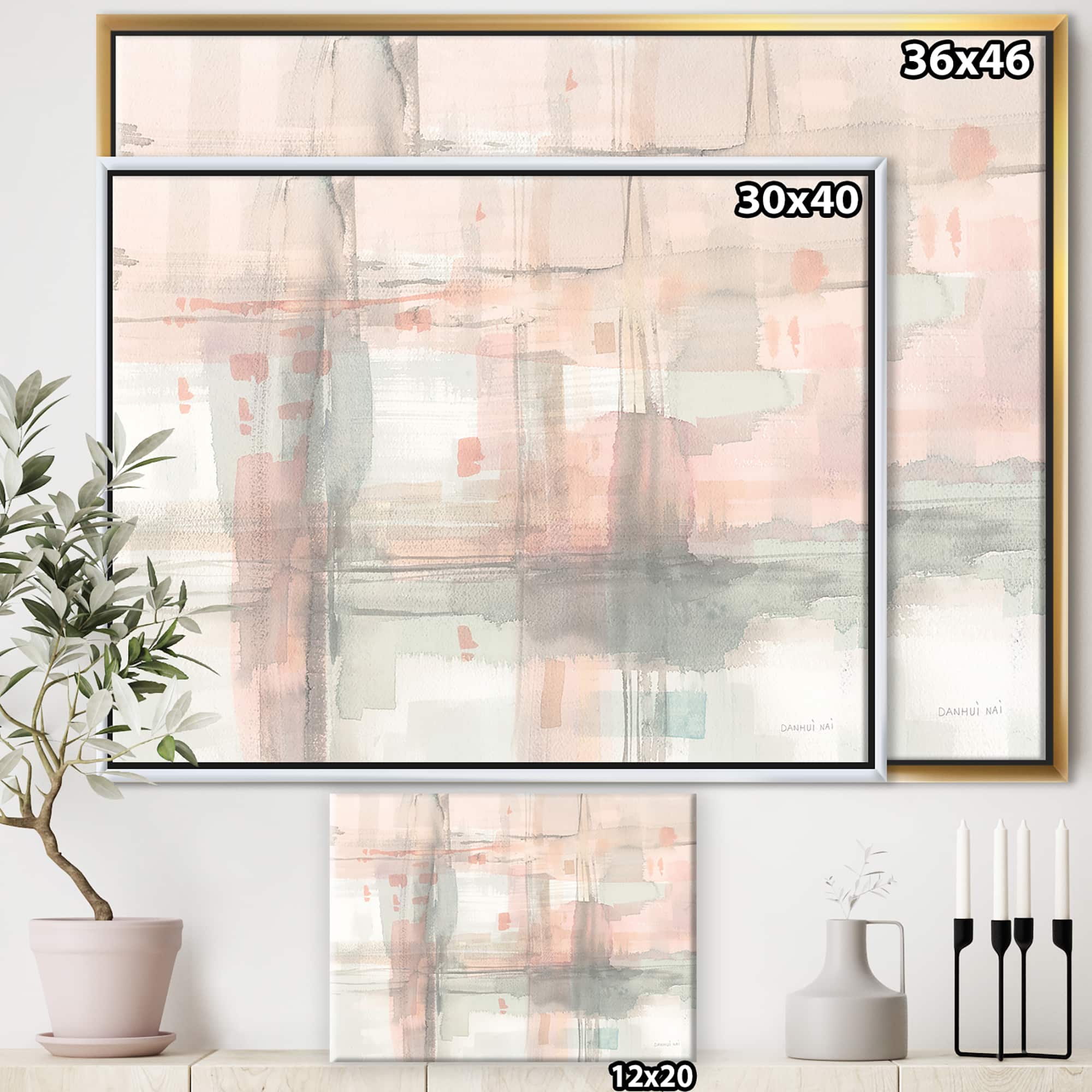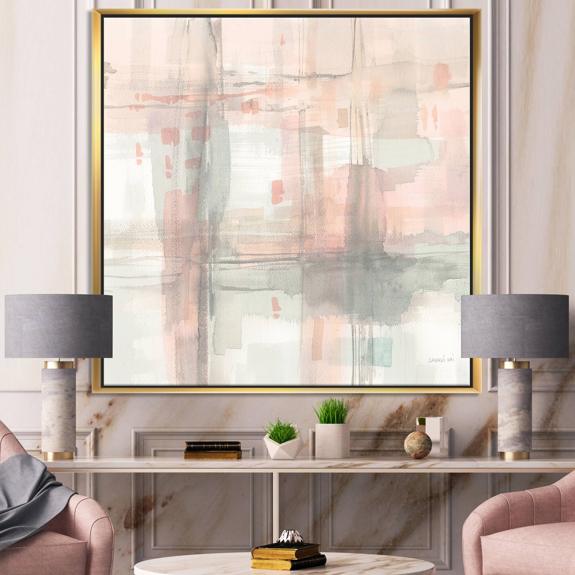 Designart - Intersect II Grey - Pink Modern Canvas in Gold Frame