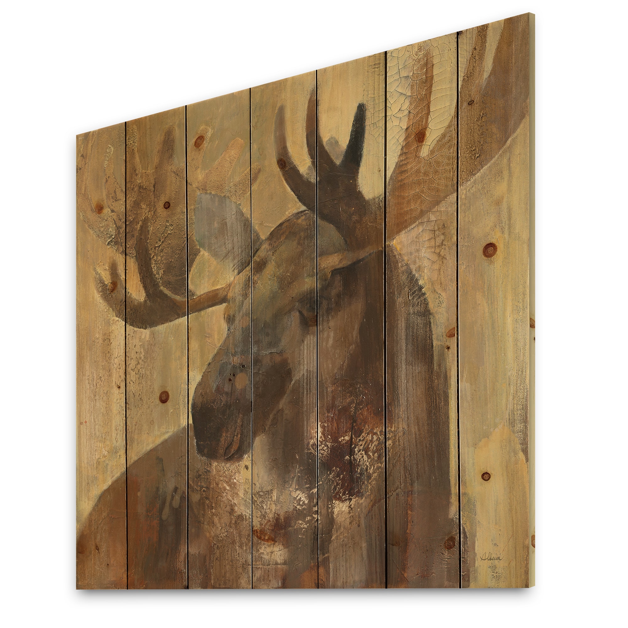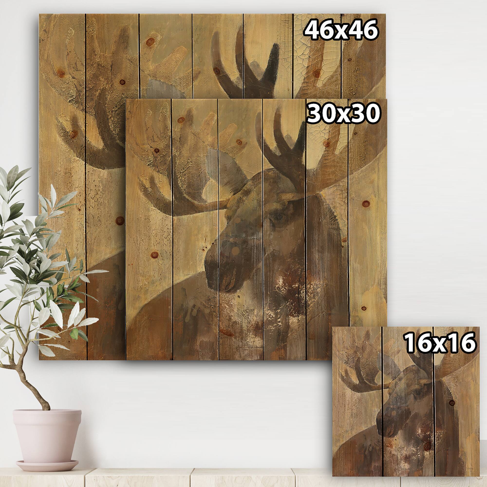 Designart - Into the Wild Gold Moose - Farmhouse Print on Natural Pine Wood