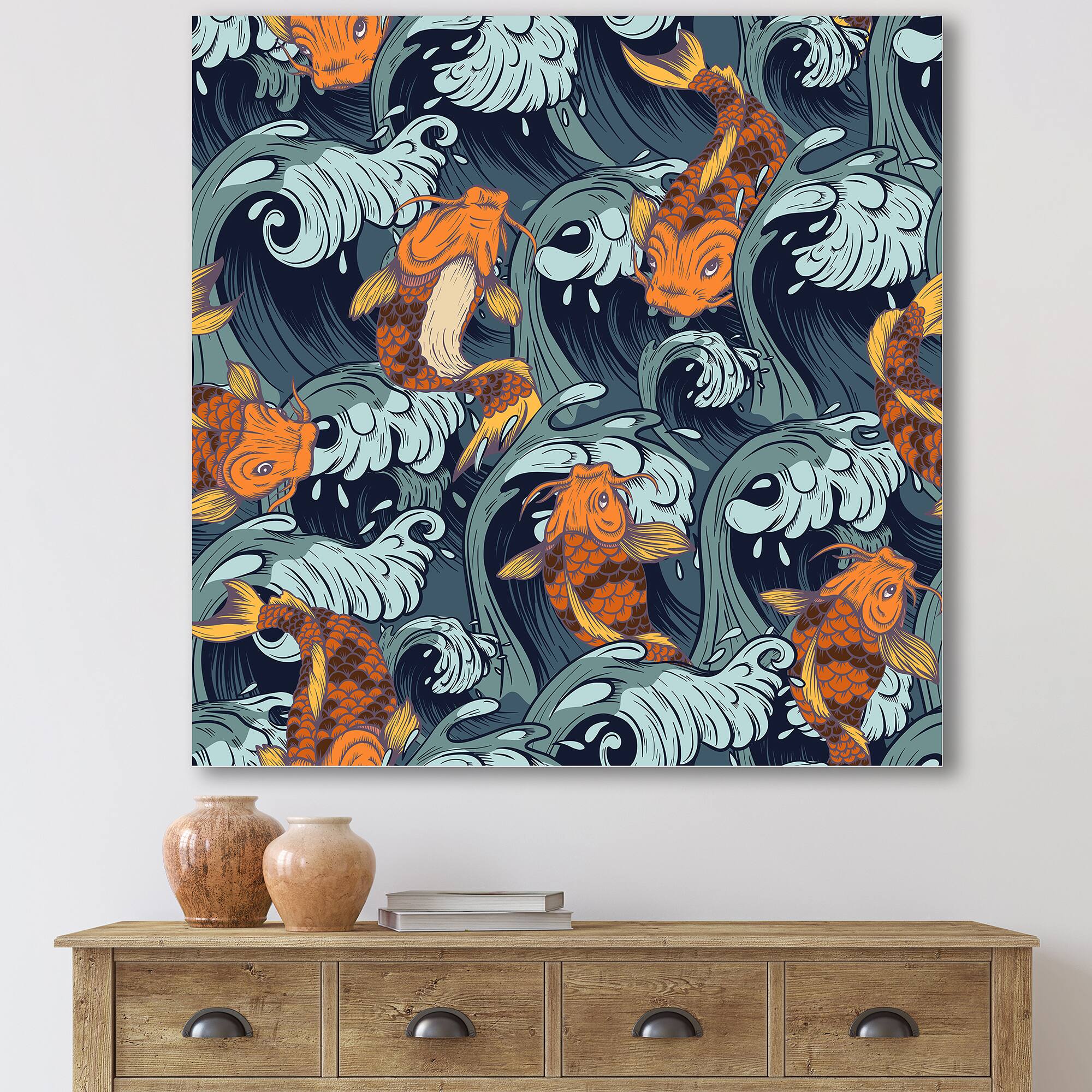 Designart - Japanese Koi Fish - Nautical & Coastal Canvas Wall Art Print