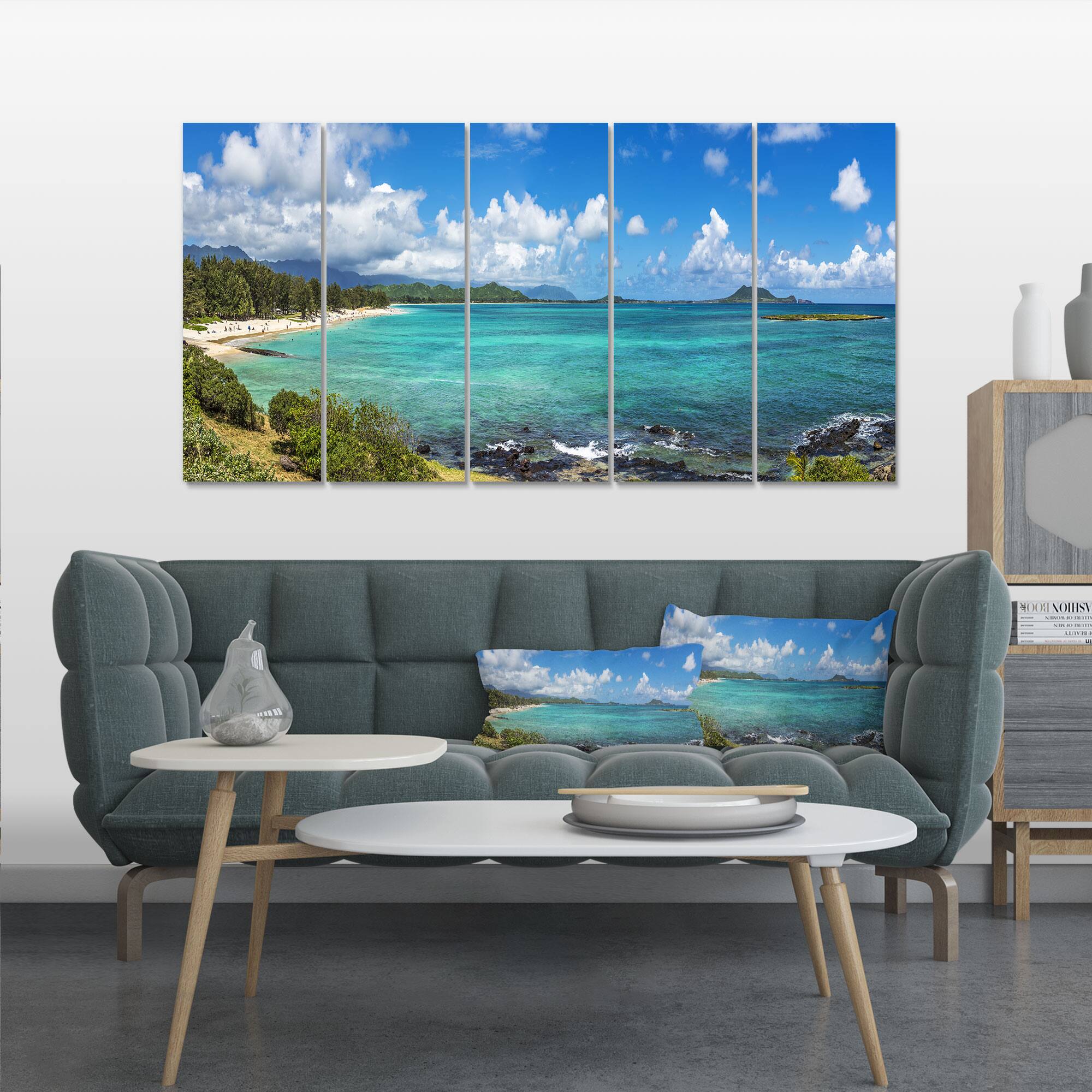 Designart - Kailua Beach in Oahu - Landscapes Sea & Shore Photographic on Wrapped Canvas set