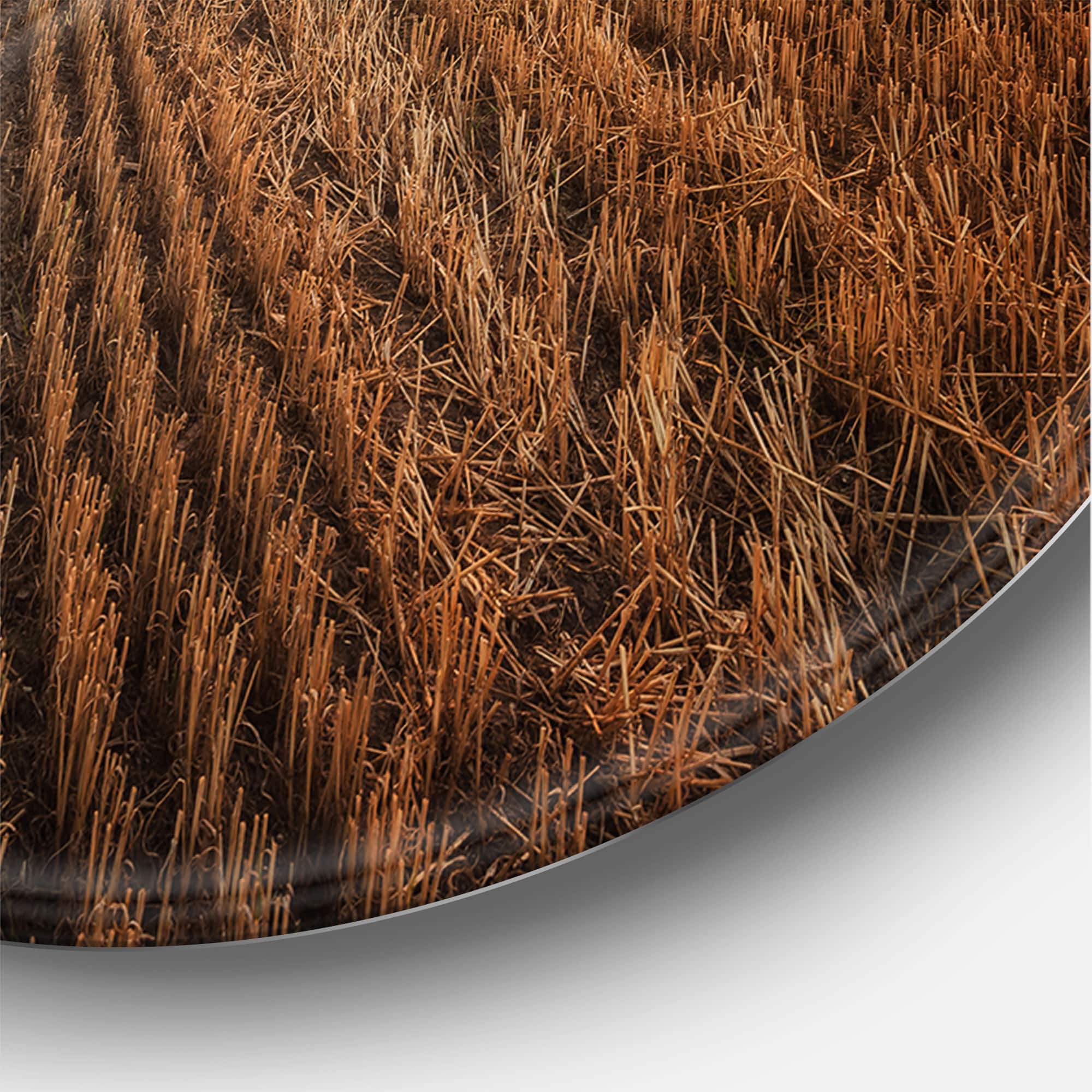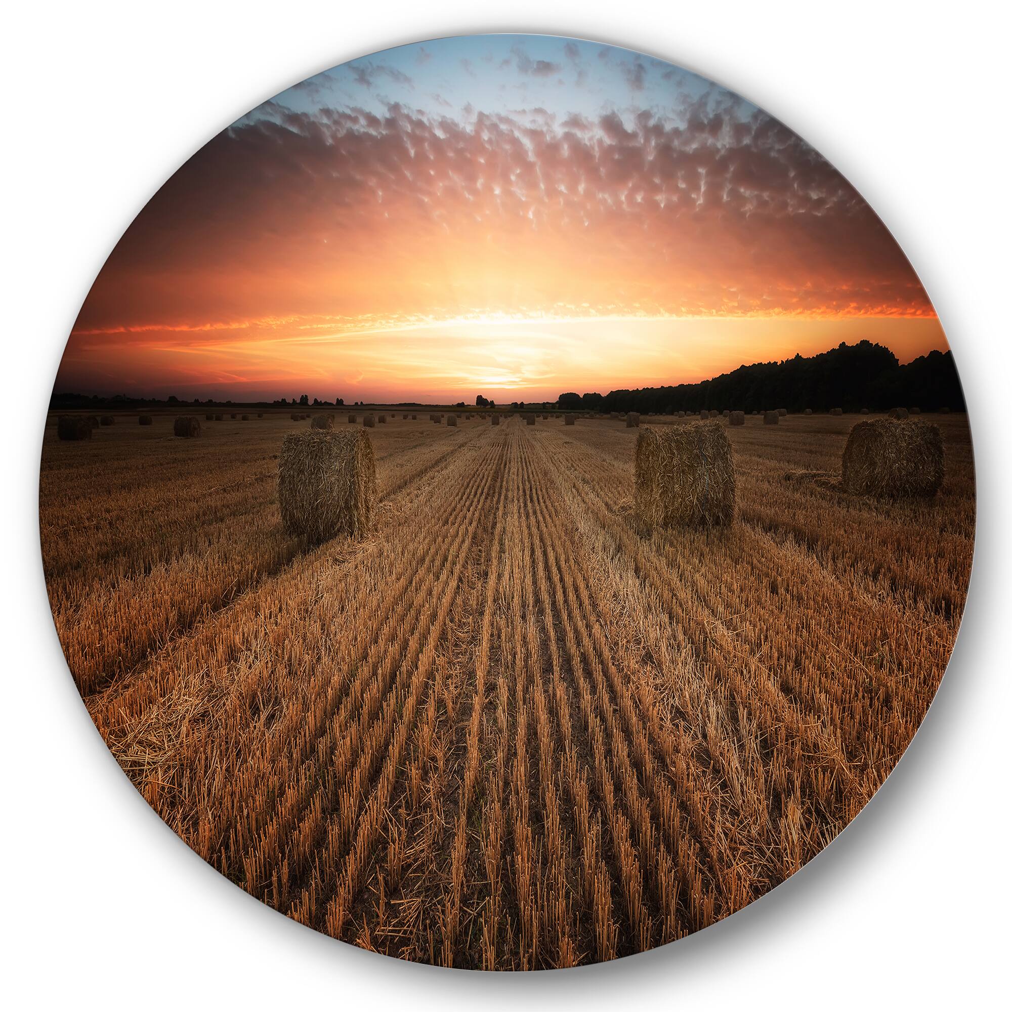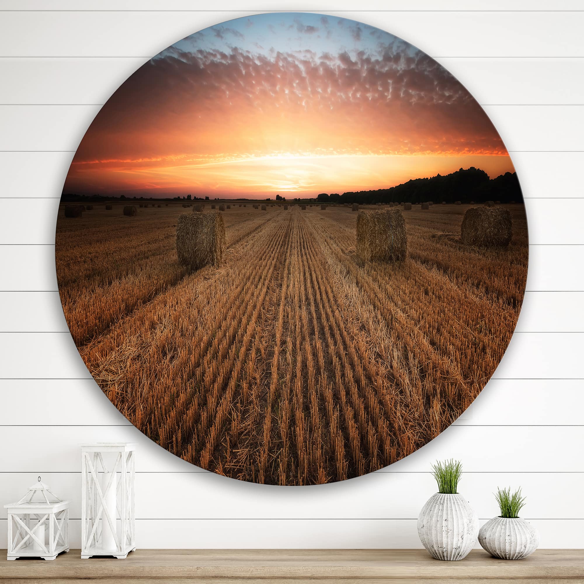 Designart - Landscape With A Field Full of Hay Bales At Sunset - Farmhouse Metal Circle Wall Art