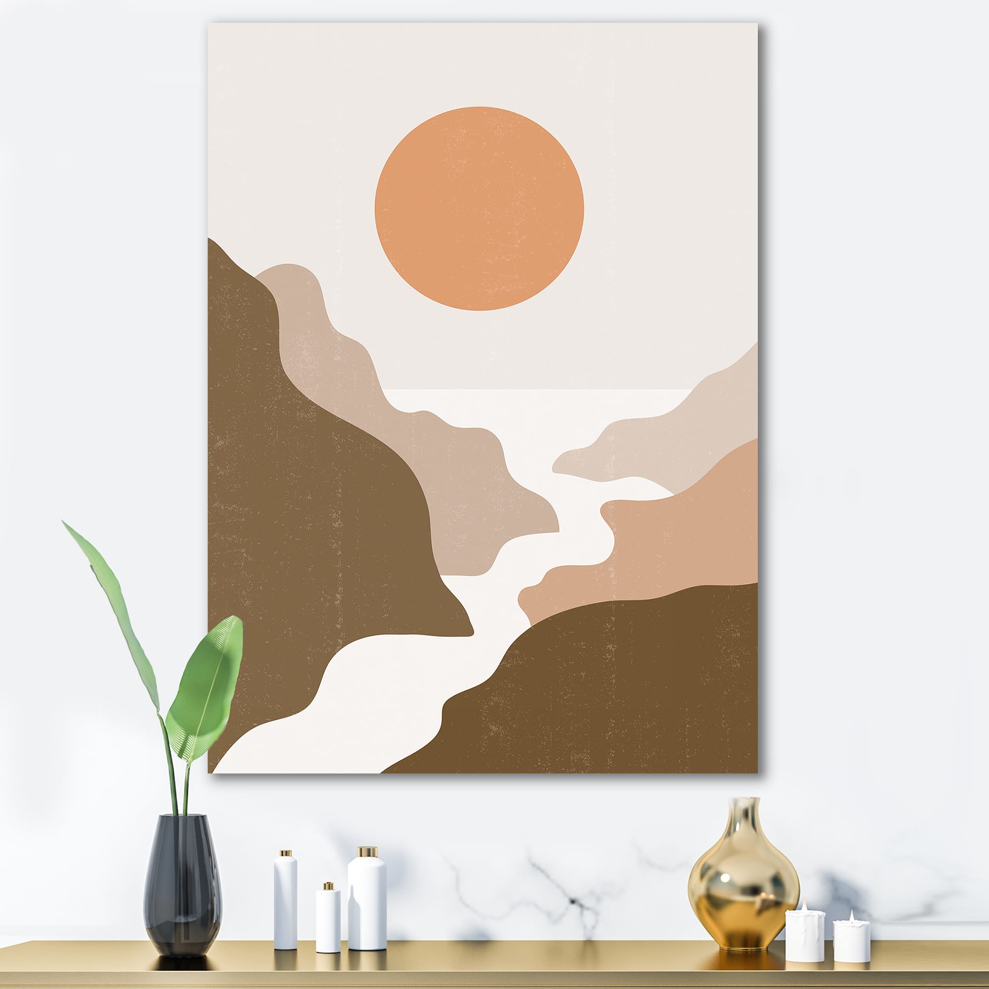 Designart - Lanscape With Full Moon In Terracotta Tones - Modern Canvas Wall Art Print