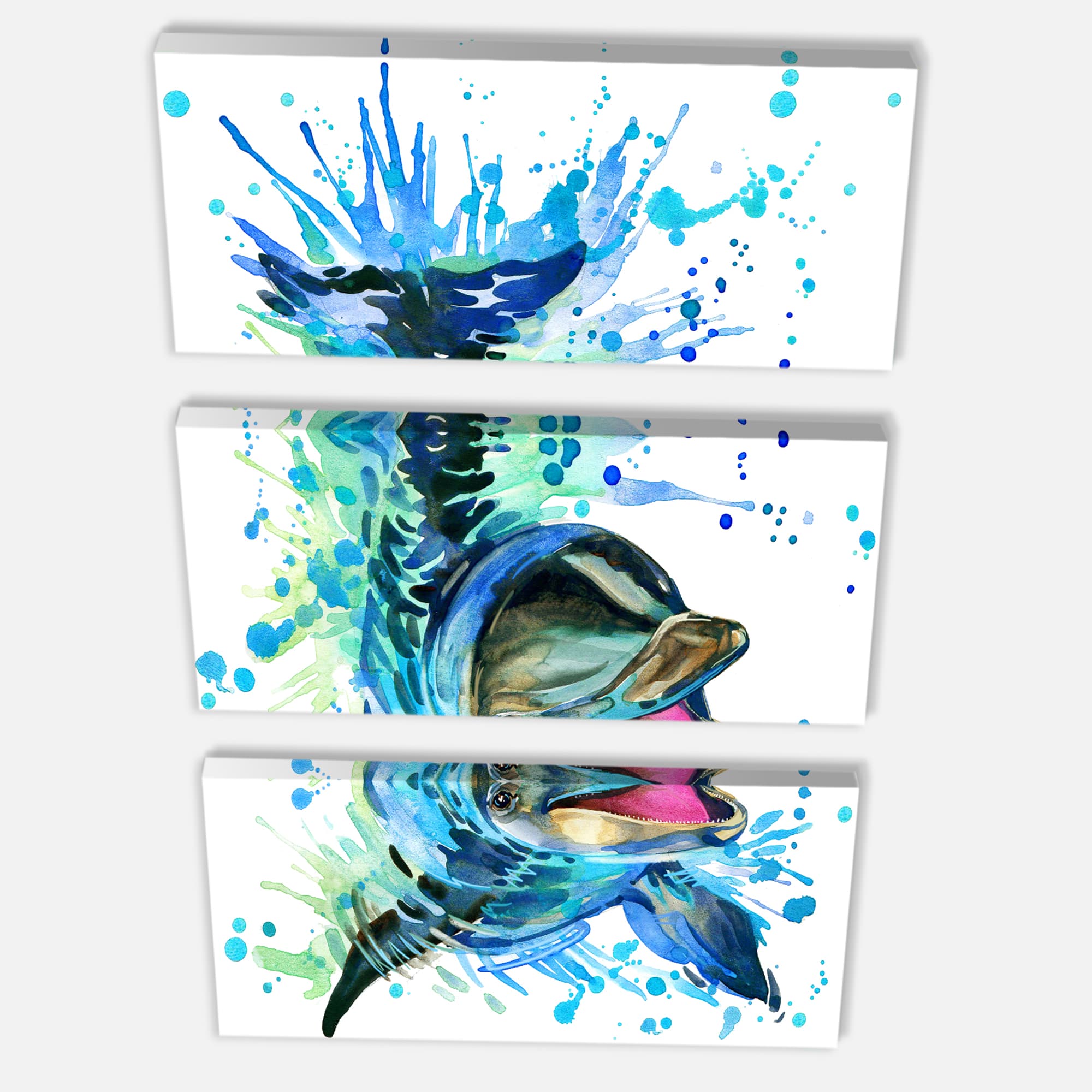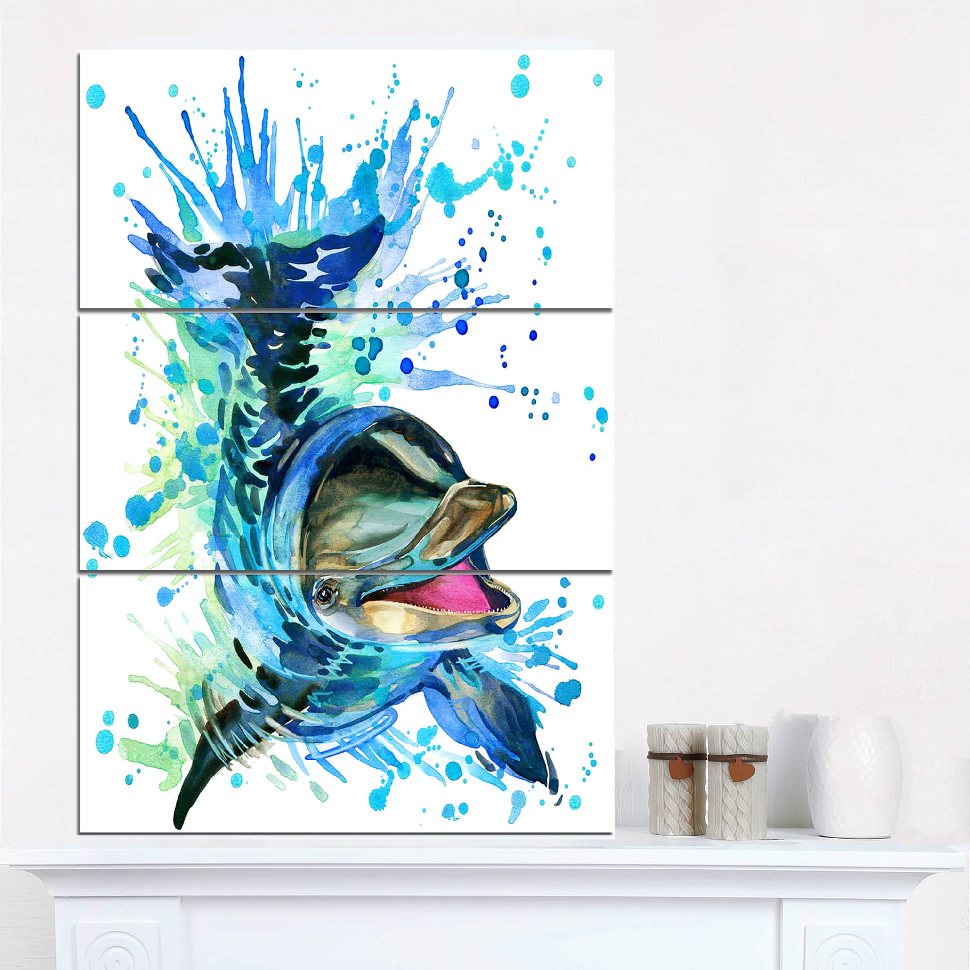 Designart - Large Blue Dolphin Watercolor - Contemporary Animal Art Canvas