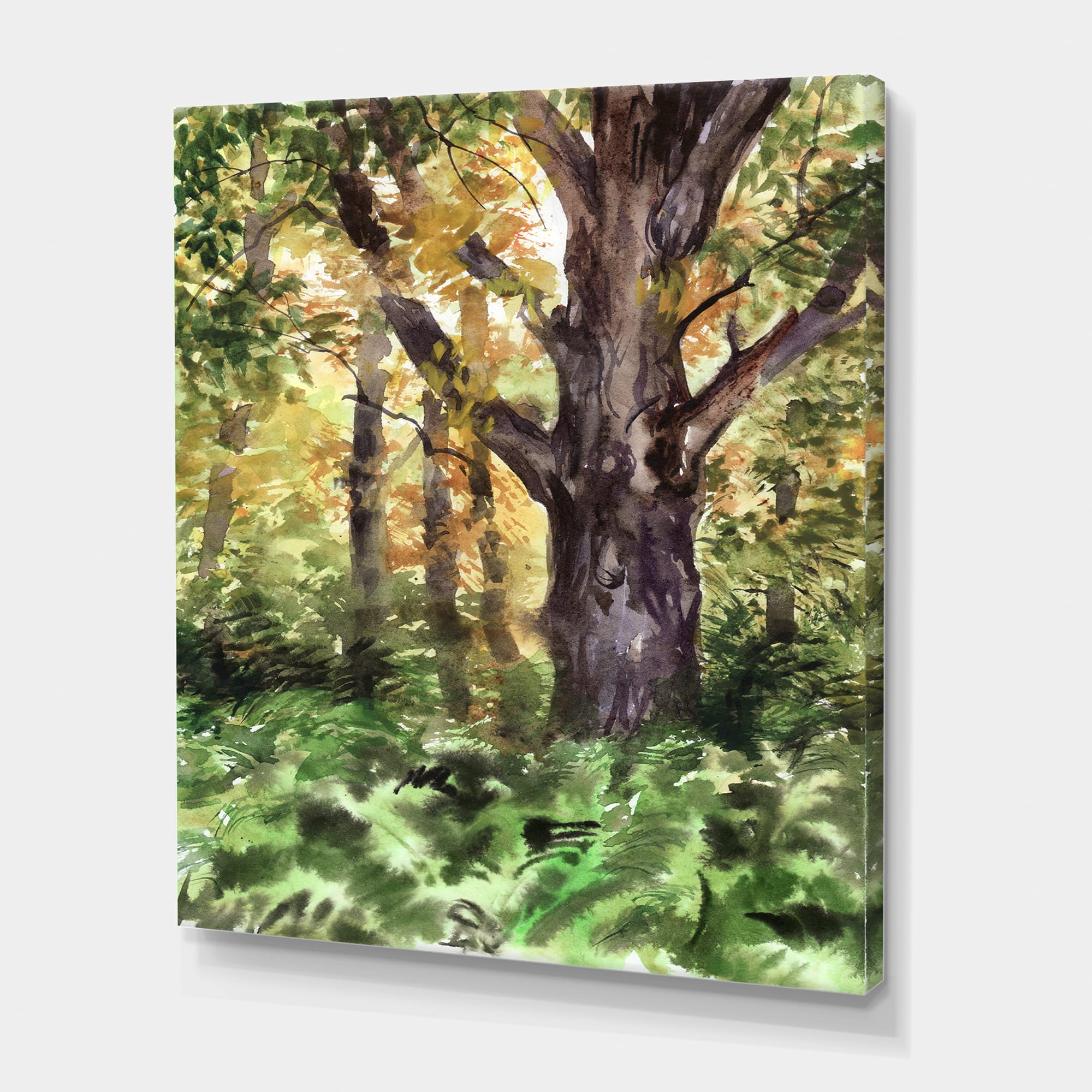 Designart - Large Tree In Autumn Forest - Lake House Canvas Wall Art Print