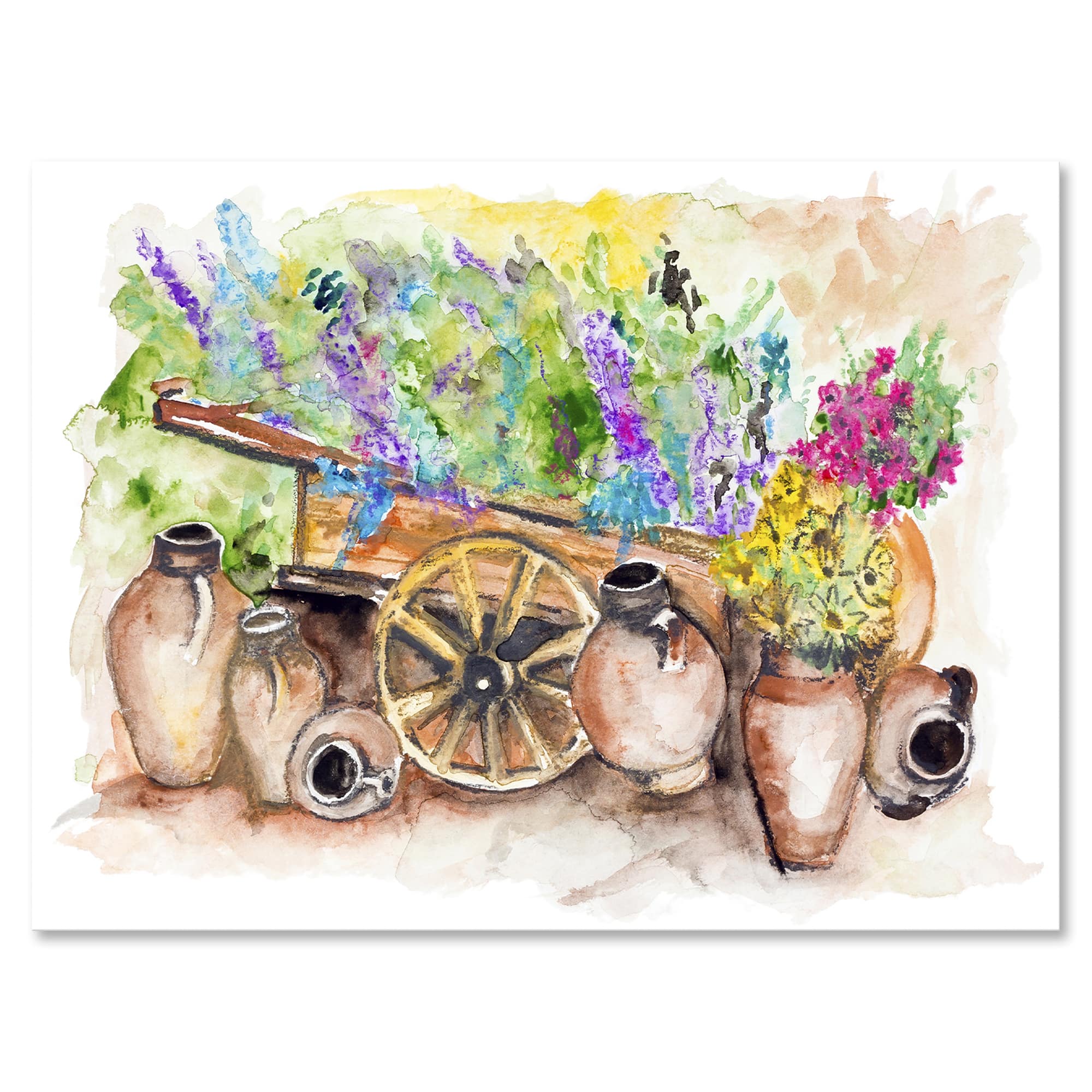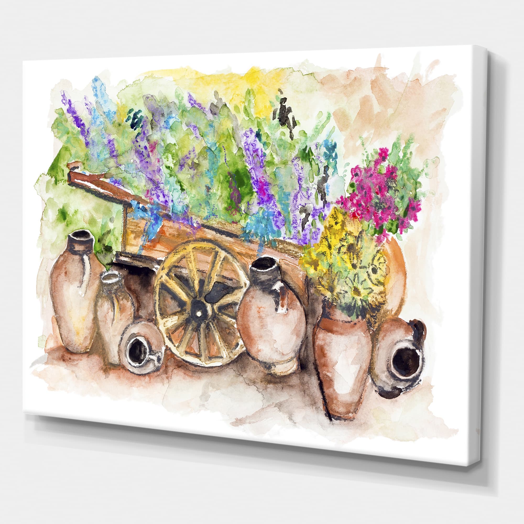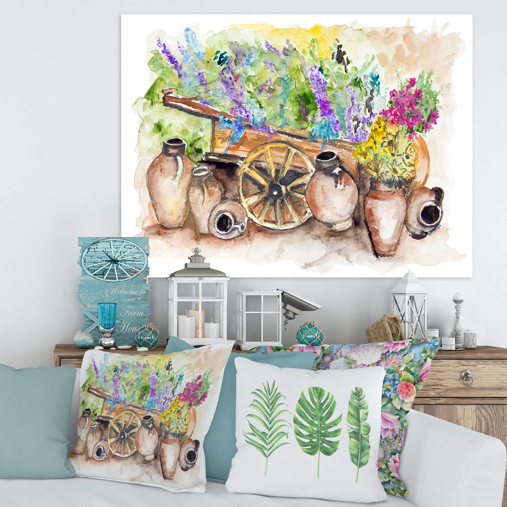 Designart - Lavender Flowers On Ancient Cart - Traditional Canvas Wall Art Print
