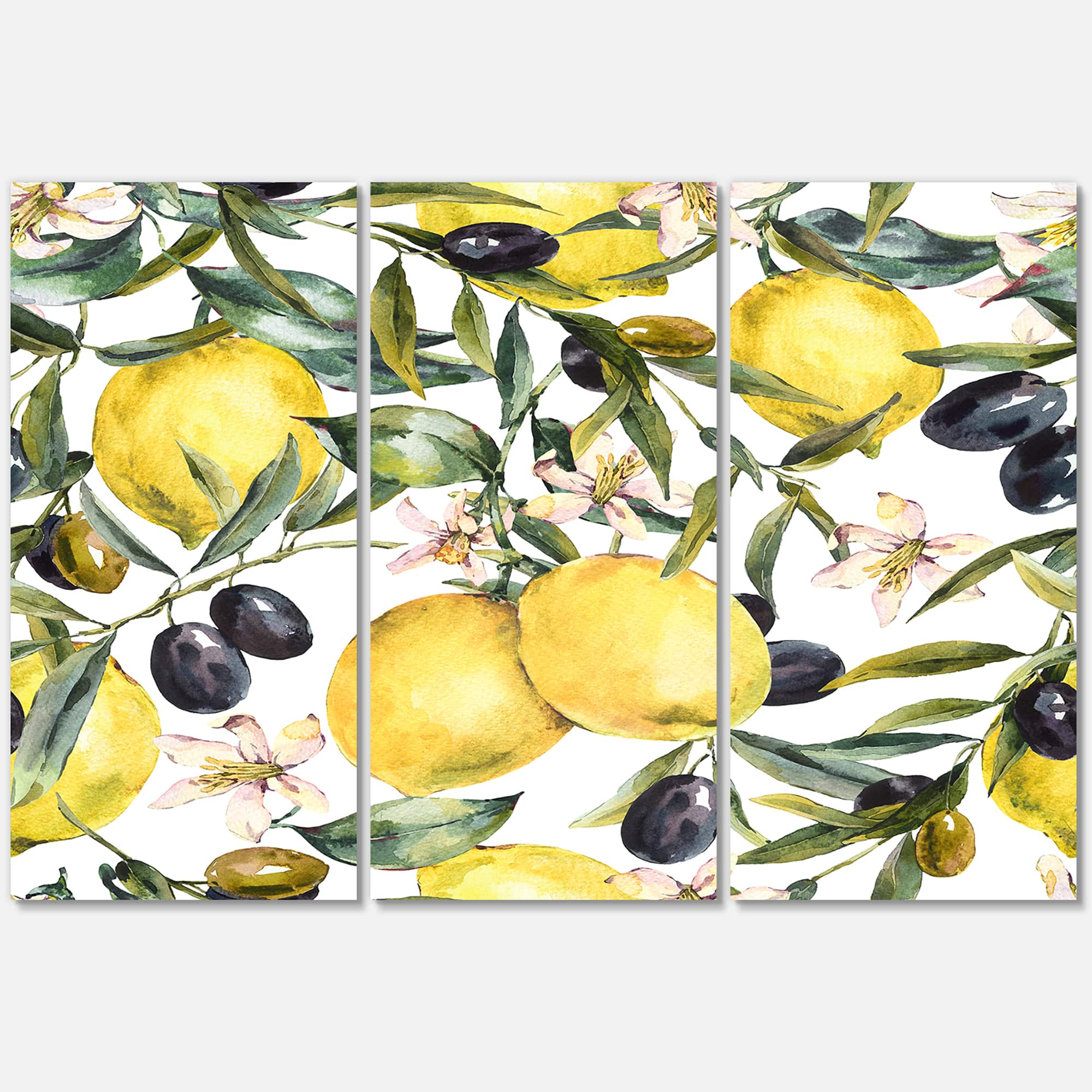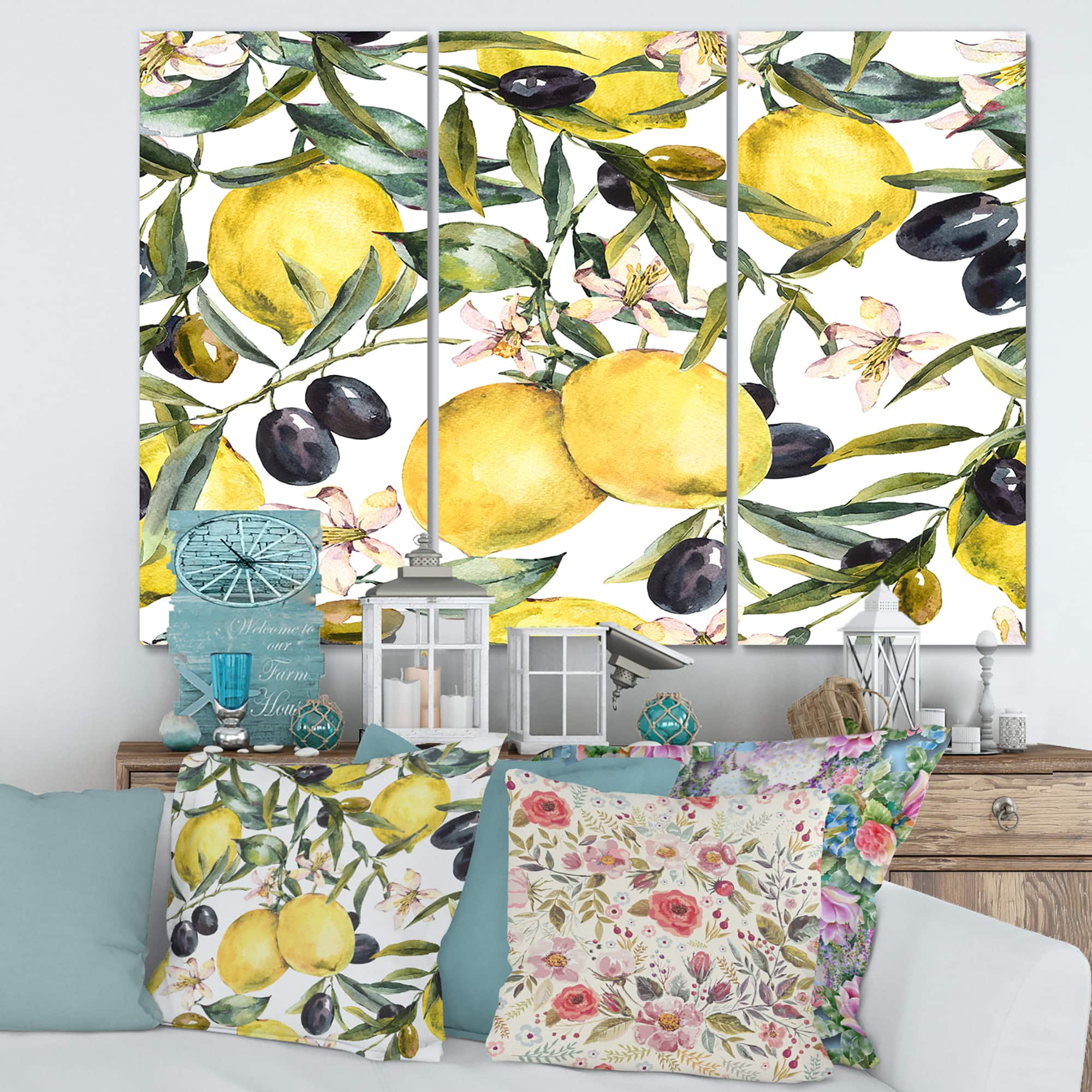 Designart - Lemon and Olive Branches I - Tropical Canvas Wall Art Print