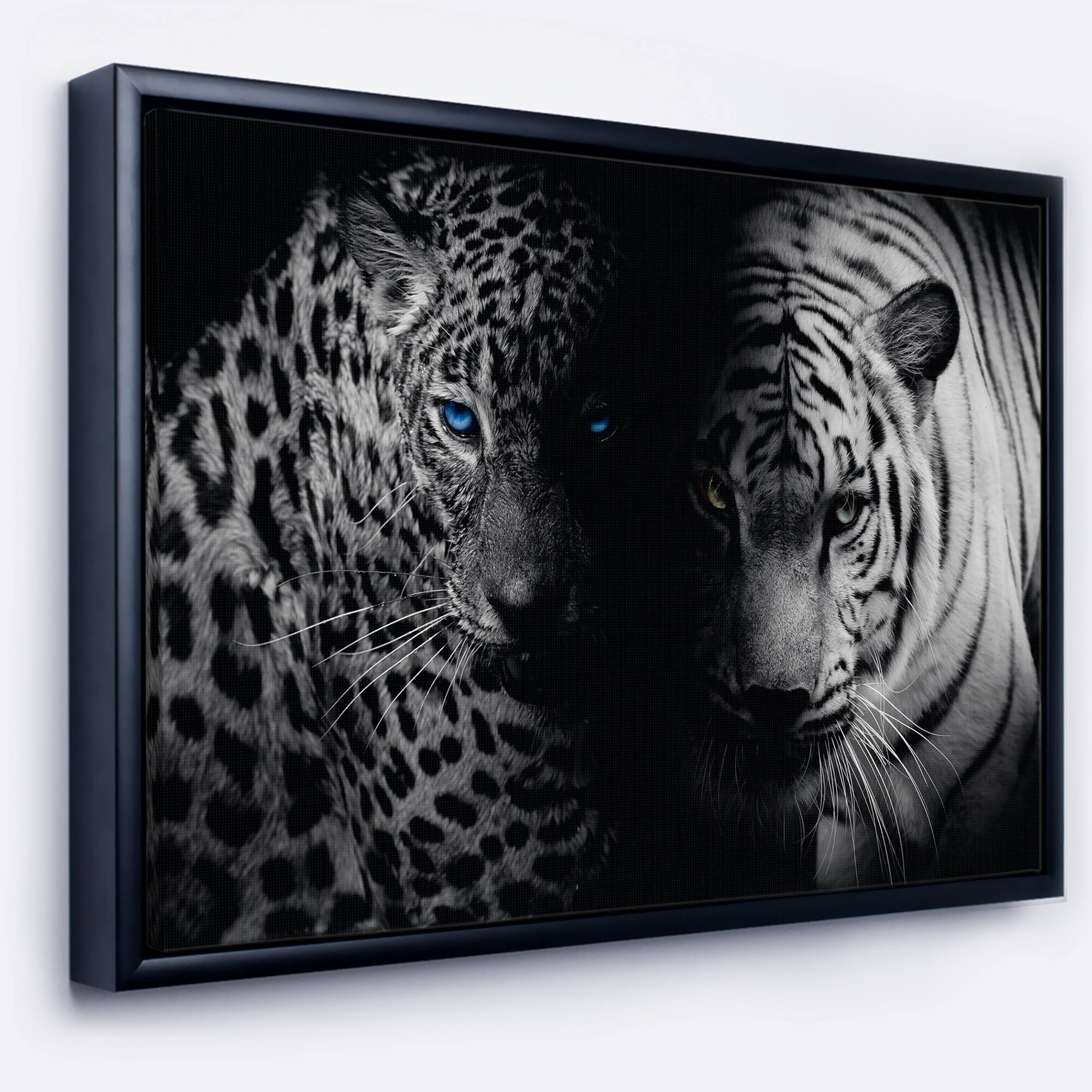 Designart - Leopard and Tiger in Black - Animal Framed Canvas Art Print