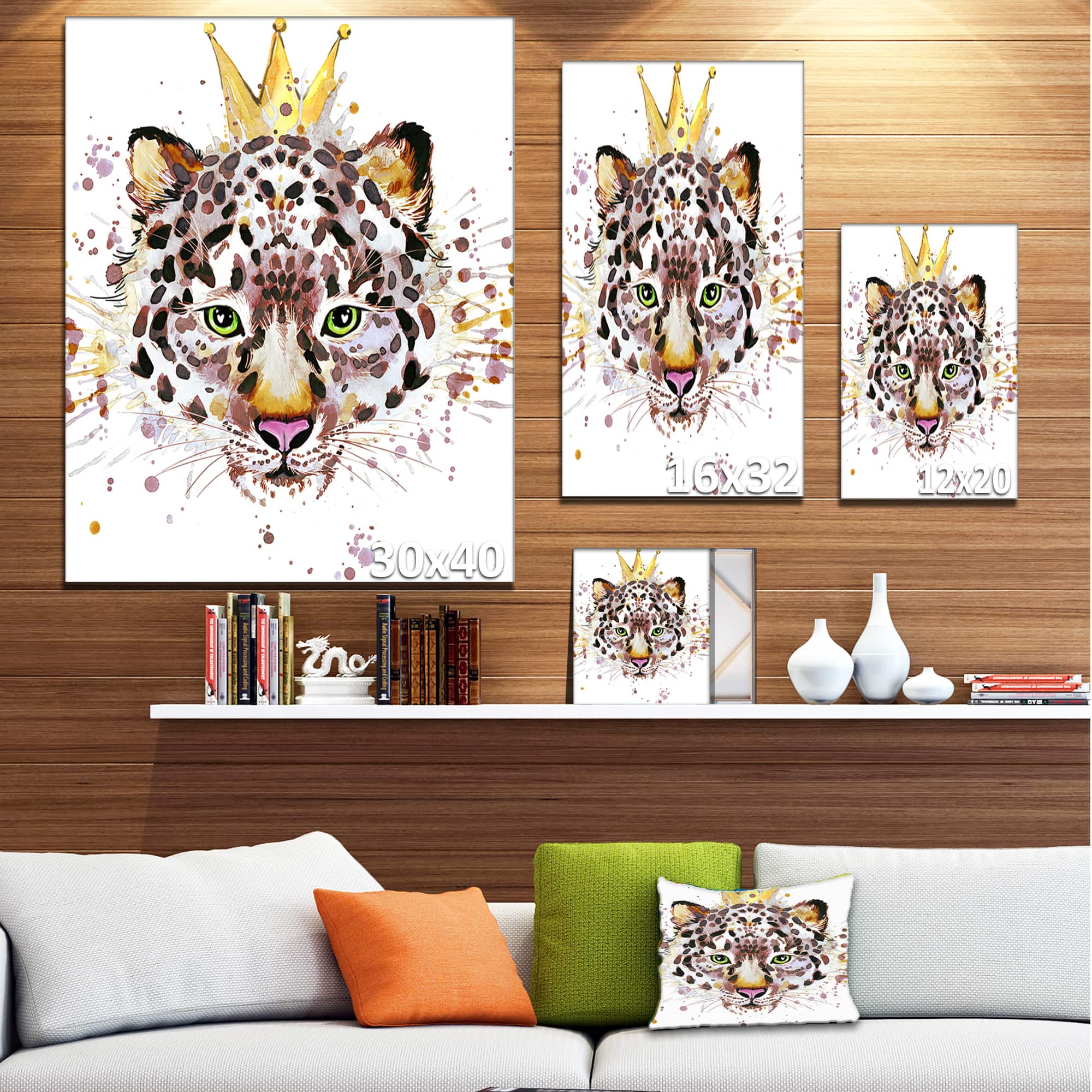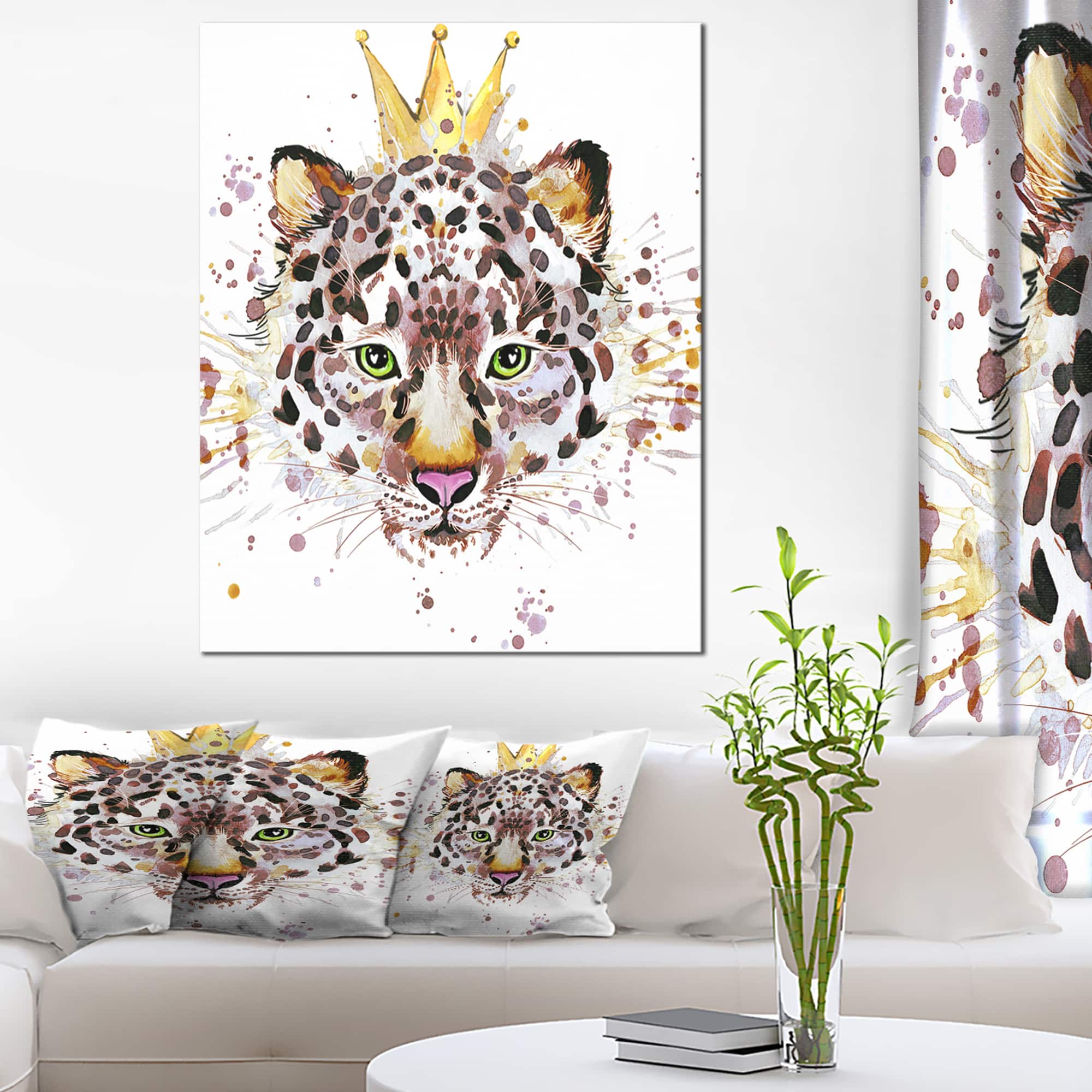 Designart - Leopard Head with Golden Crown - Contemporary Animal Art Canvas