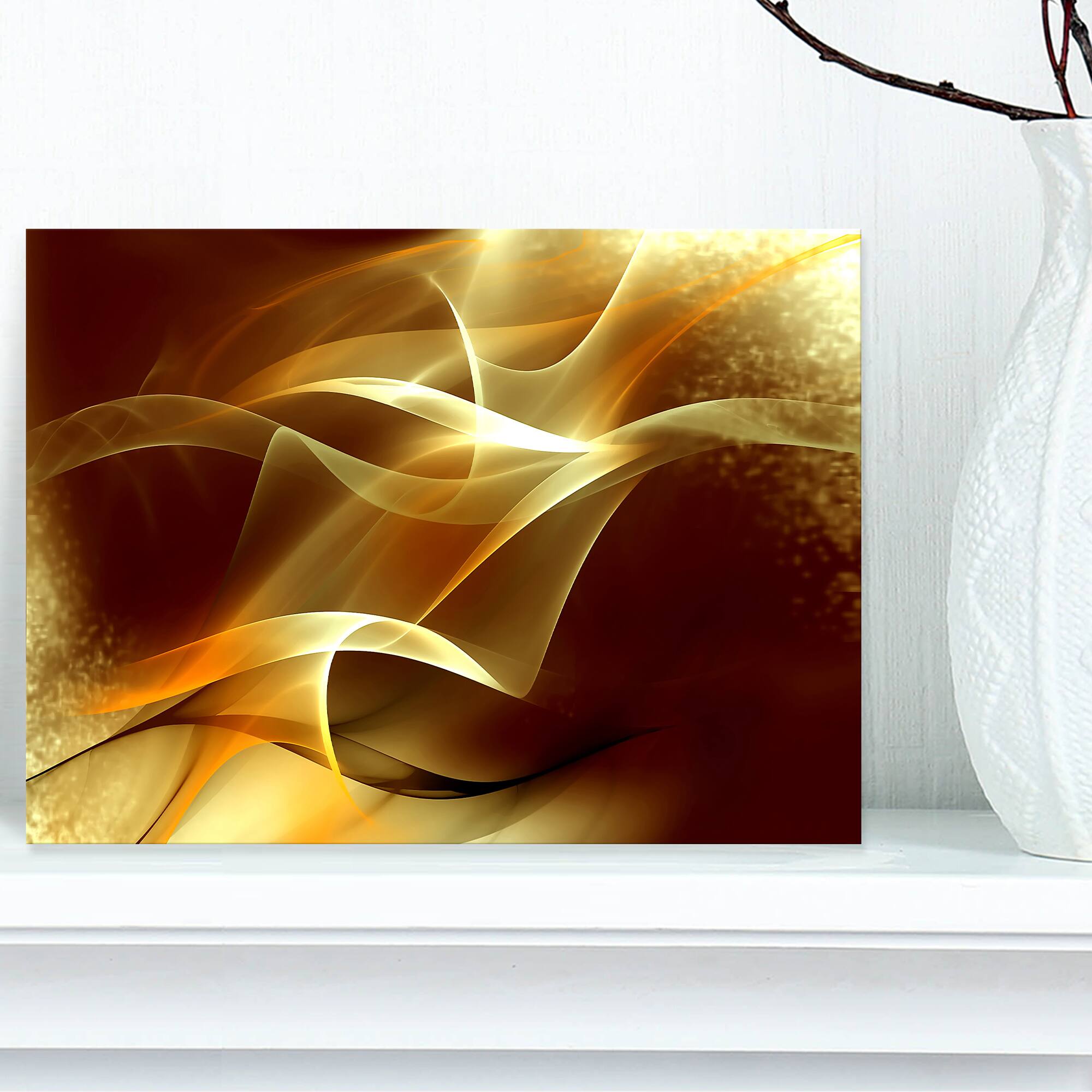 Designart - Light Yellow Abstract Fractal Design - Large Abstract Canvas Art