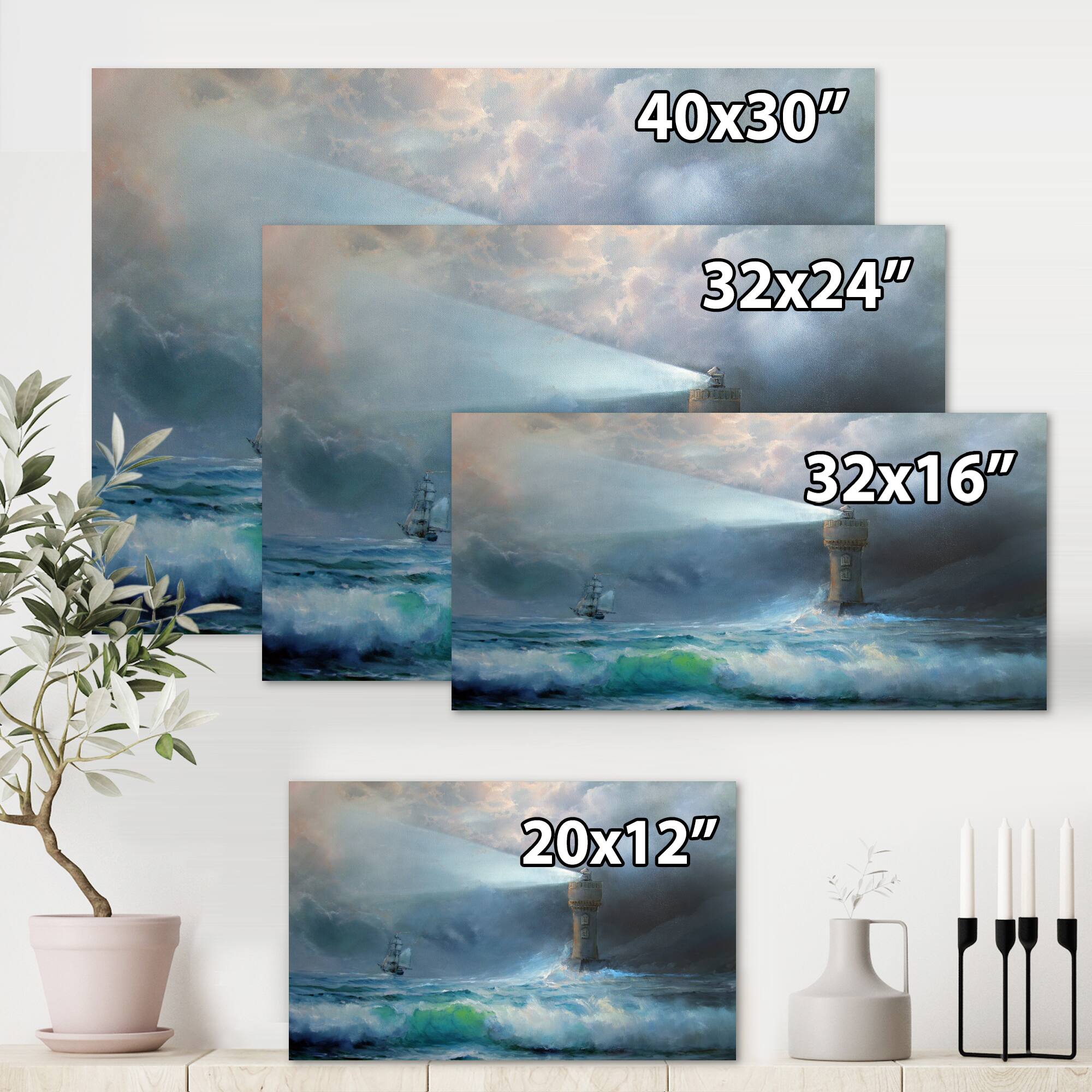 Designart - Lighthouse Shining Light During Stormy Night II - Nautical & Coastal Canvas Wall Art Print