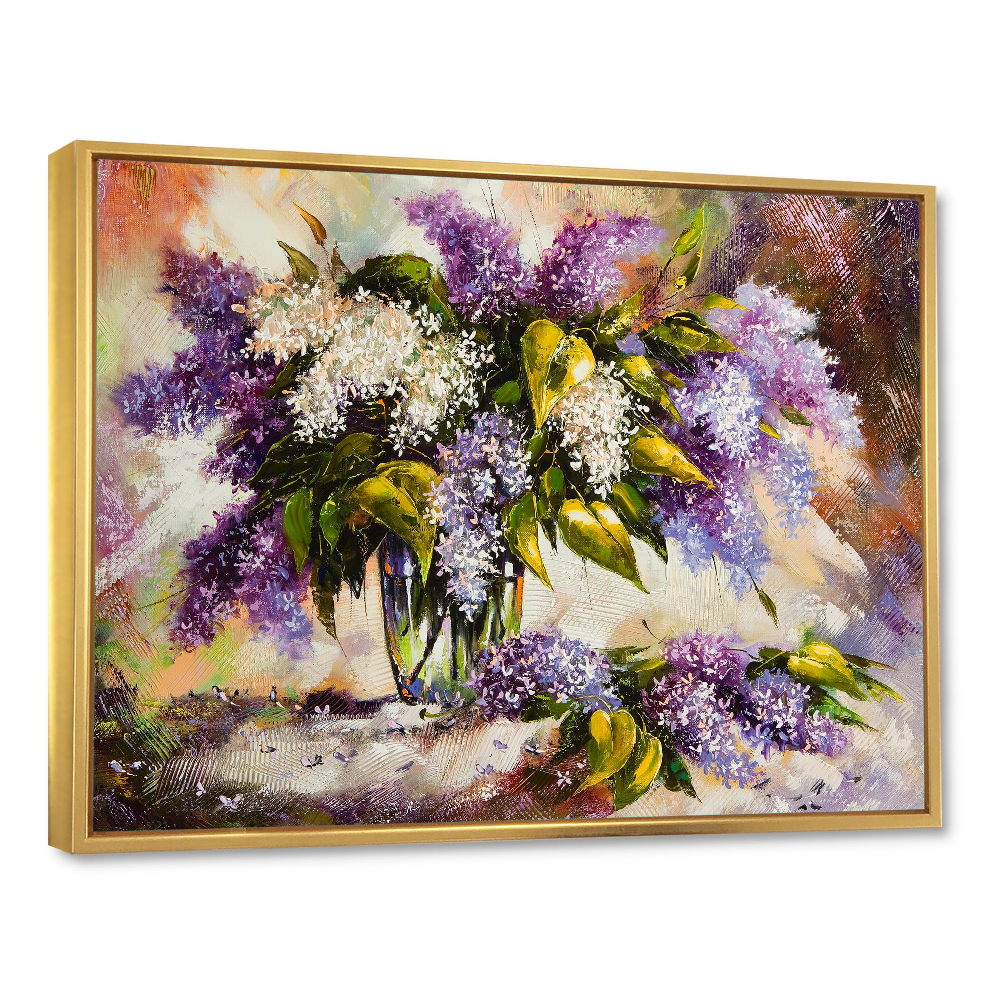 Designart - Lilac Bouquet in a Vase - Floral Painting Framed Canvas Art Print