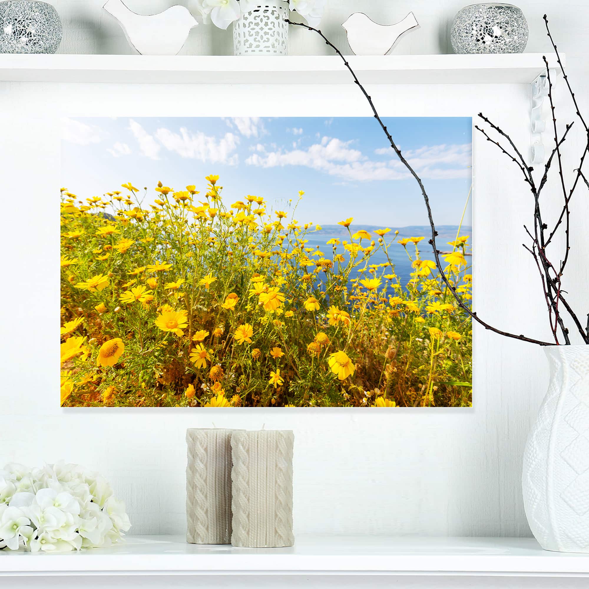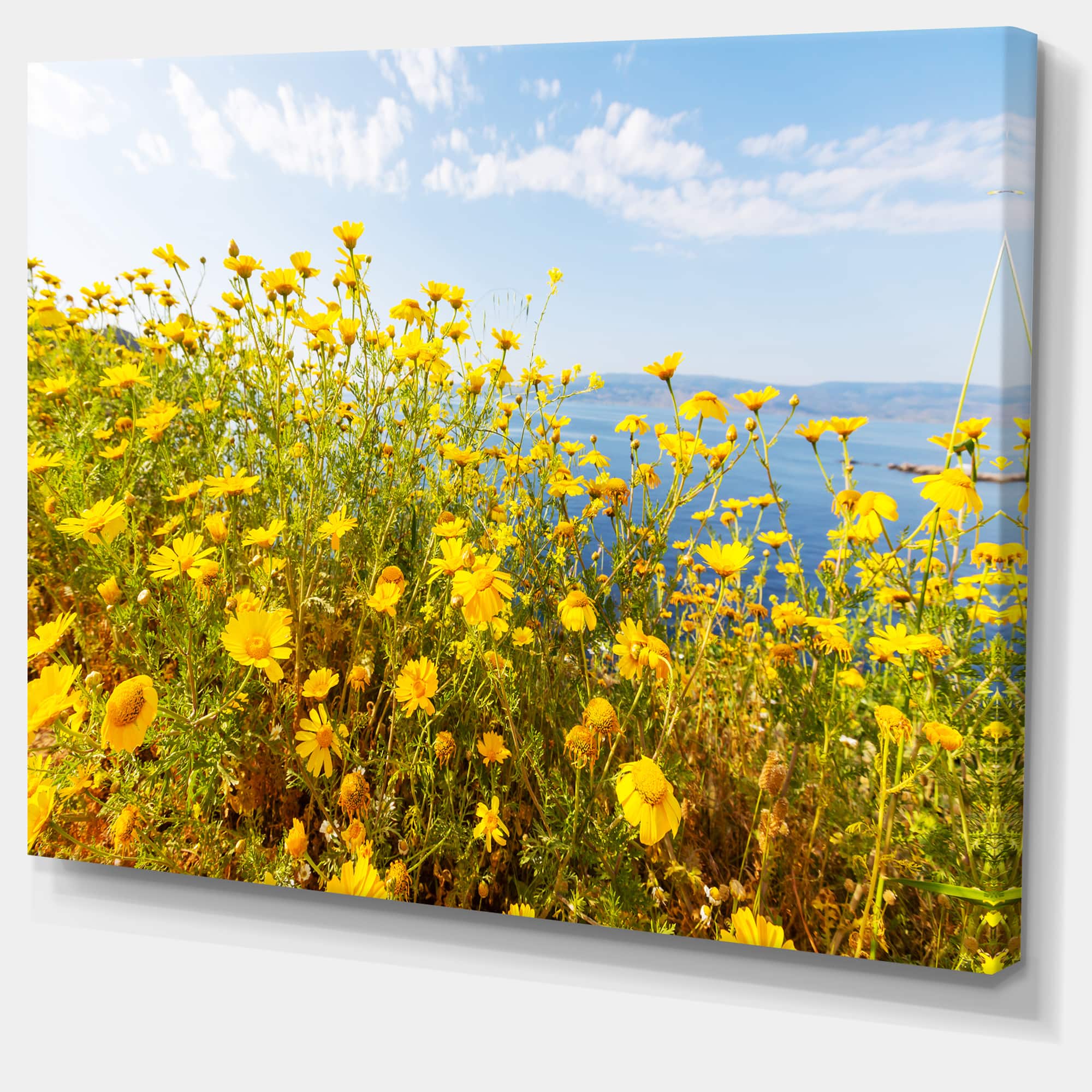 Designart - Little Yellow Flowers over Seashore - Large Flower Canvas Art Print