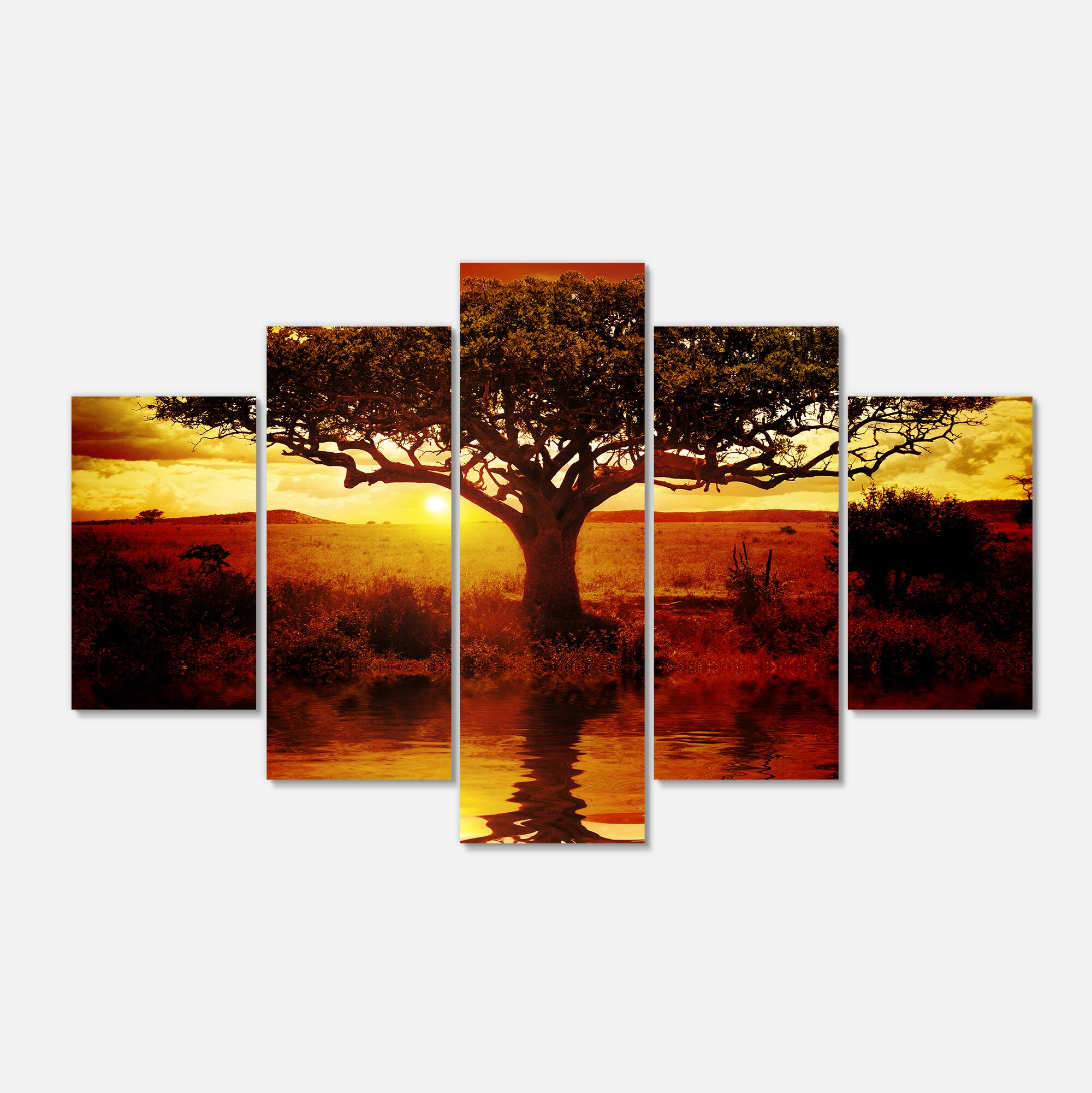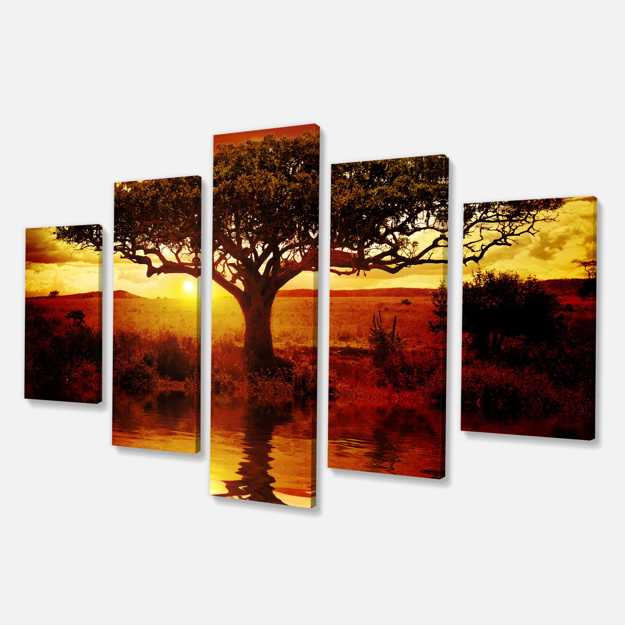 Designart - Lonely Tree in African Sunset - Oversized African Landscape Canvas Art