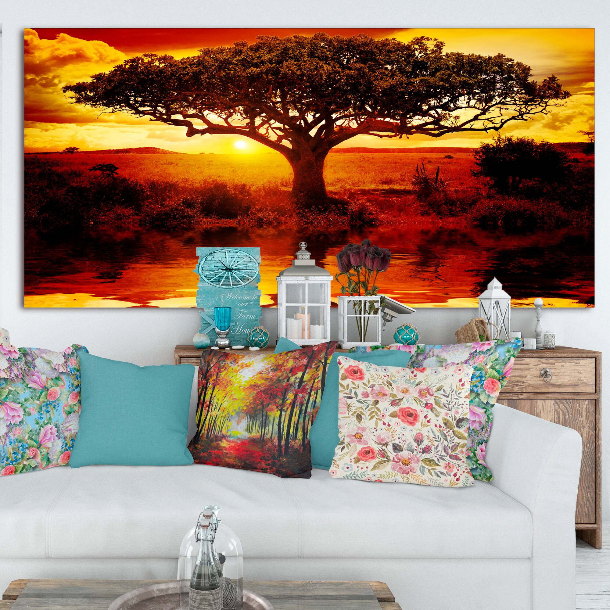 Designart - Lonely Tree in African Sunset - Oversized African Landscape Canvas Art