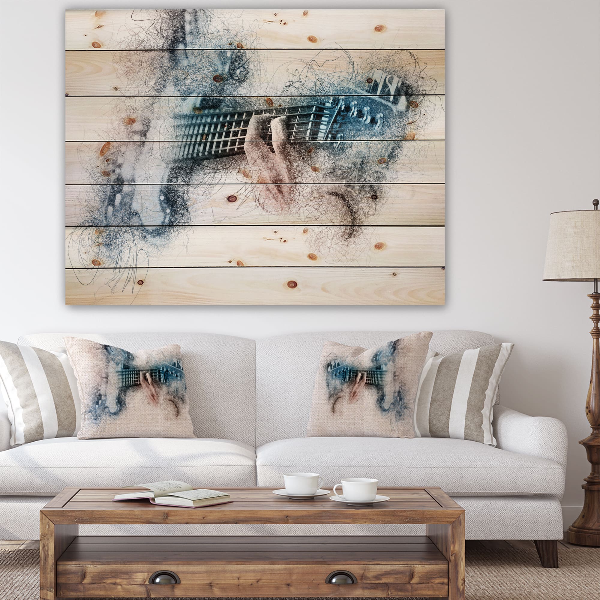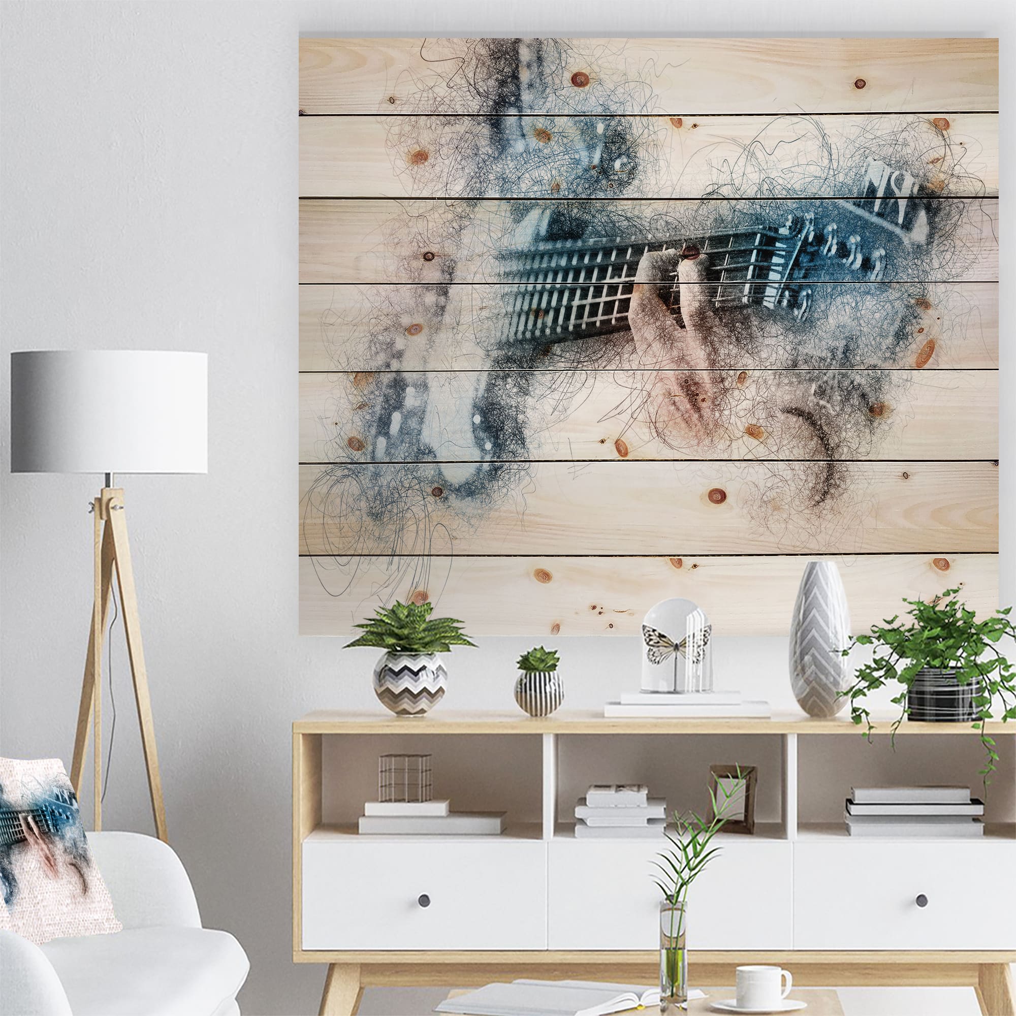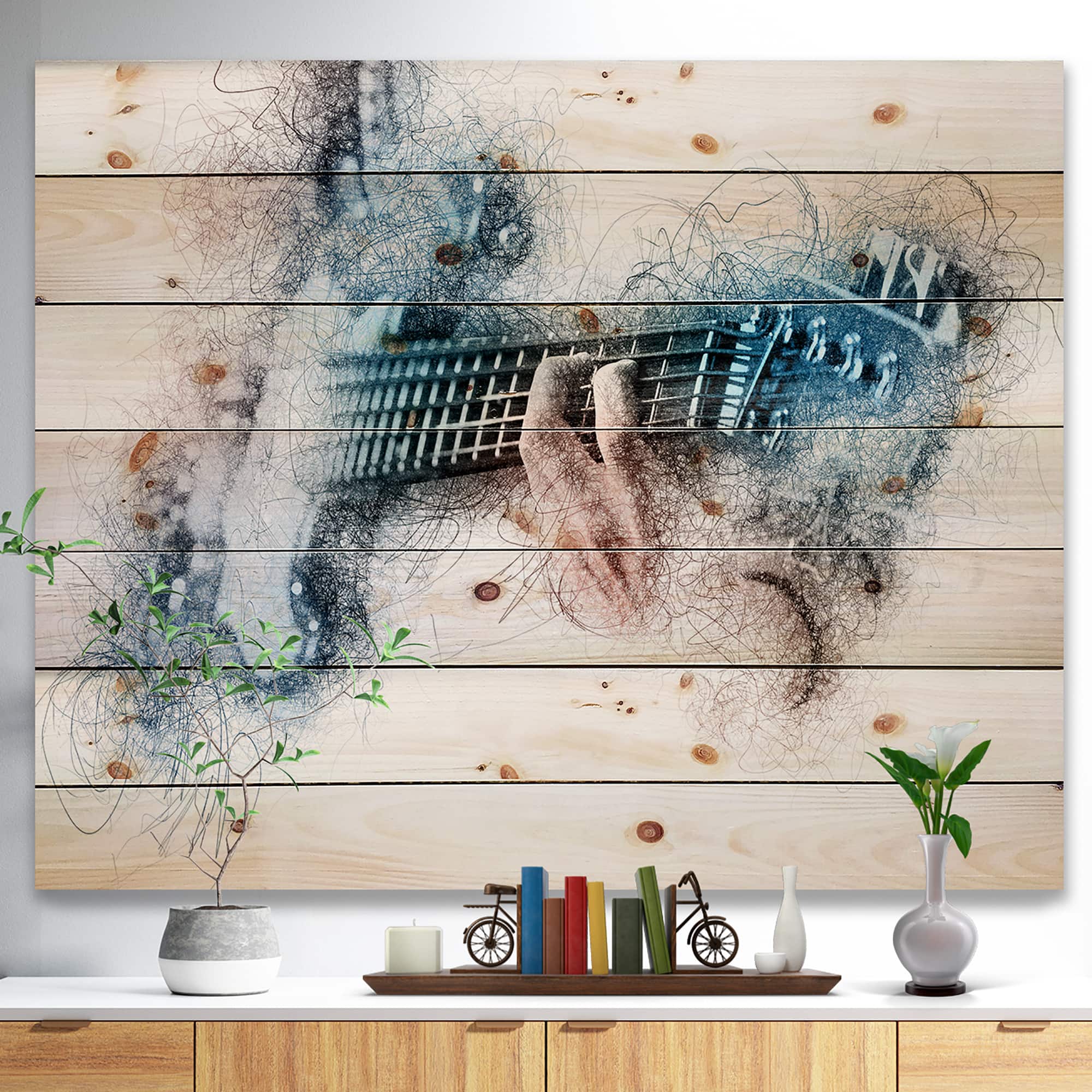 Designart - Man Playing A Guitar Watercolor - Contemporary Print on Natural Pine Wood